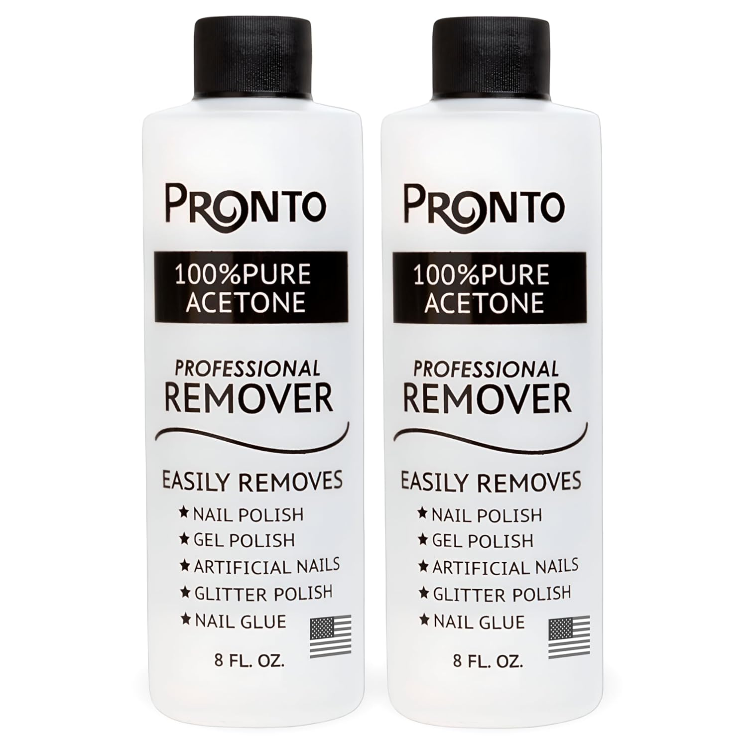 • THE ONLY ONE YOU NEED: Pronto Pure Acetone easily removes nail polish, gel or shellac polish, sculptured nail forms and nail art, artificial nails, glitter polish or nail glue. You can use our professional acrylic nail remover straight from our bottle or from an acetone dispenser.