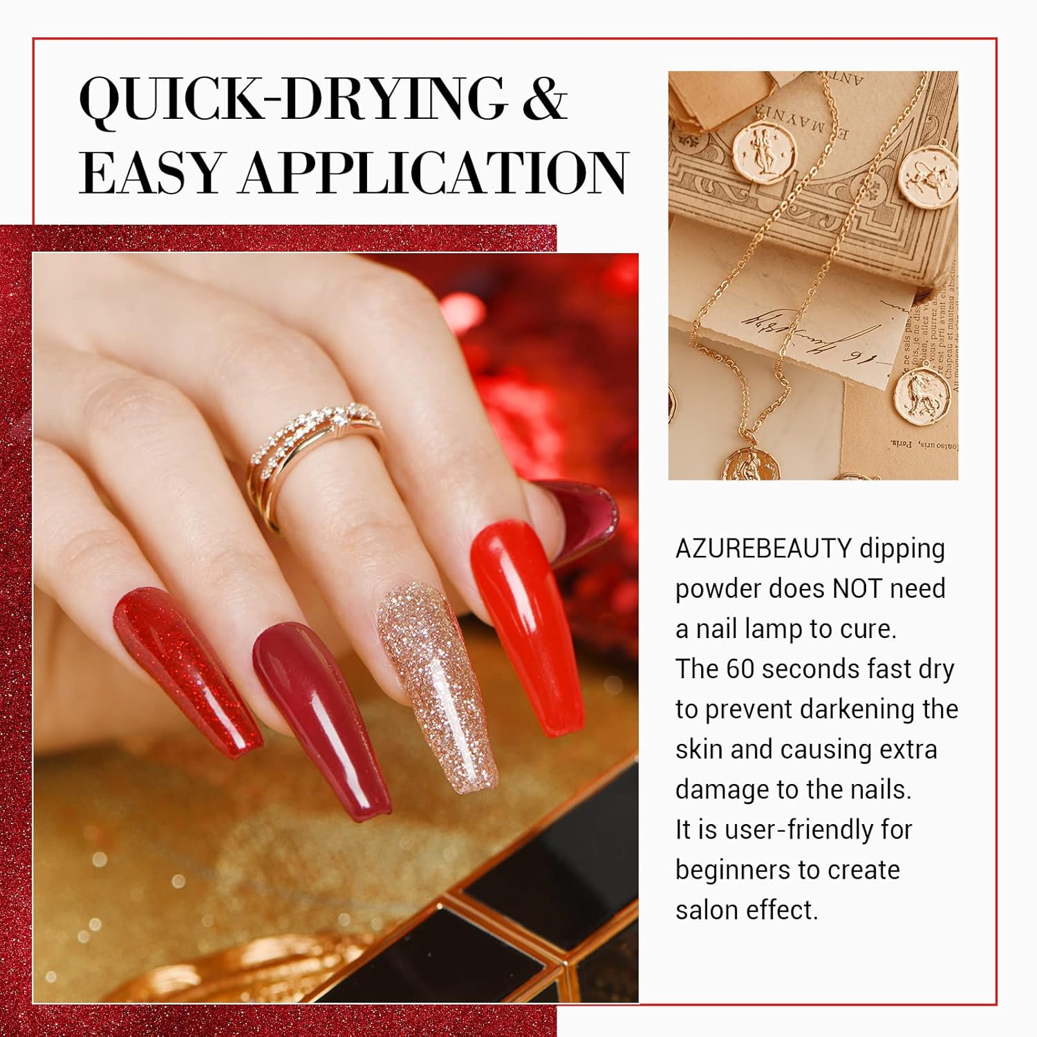 • No Need Nail Lamp Curing & Easy Application: AZUREBEAUTY dip powder nail starter kit doesn't need a nail lamp to cure, and dry faster and is skin-friendly, which can avoid turning skin black and damaging nails. Easy to apply, suitable for beginners and professional nail salons