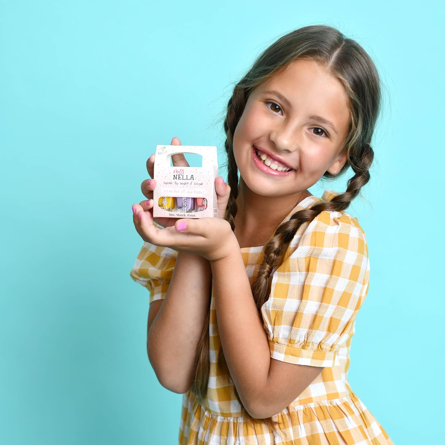• EASY TO REMOVE: In order to avoid having to use toxic nail polish remover on your little one’s delicate skin, all Miss Nella’s nail polishes are peel-off, so you can clean the colours off in a matter of seconds. Just grab any loose end of the nail polish on each fingertip and all the color is gone!