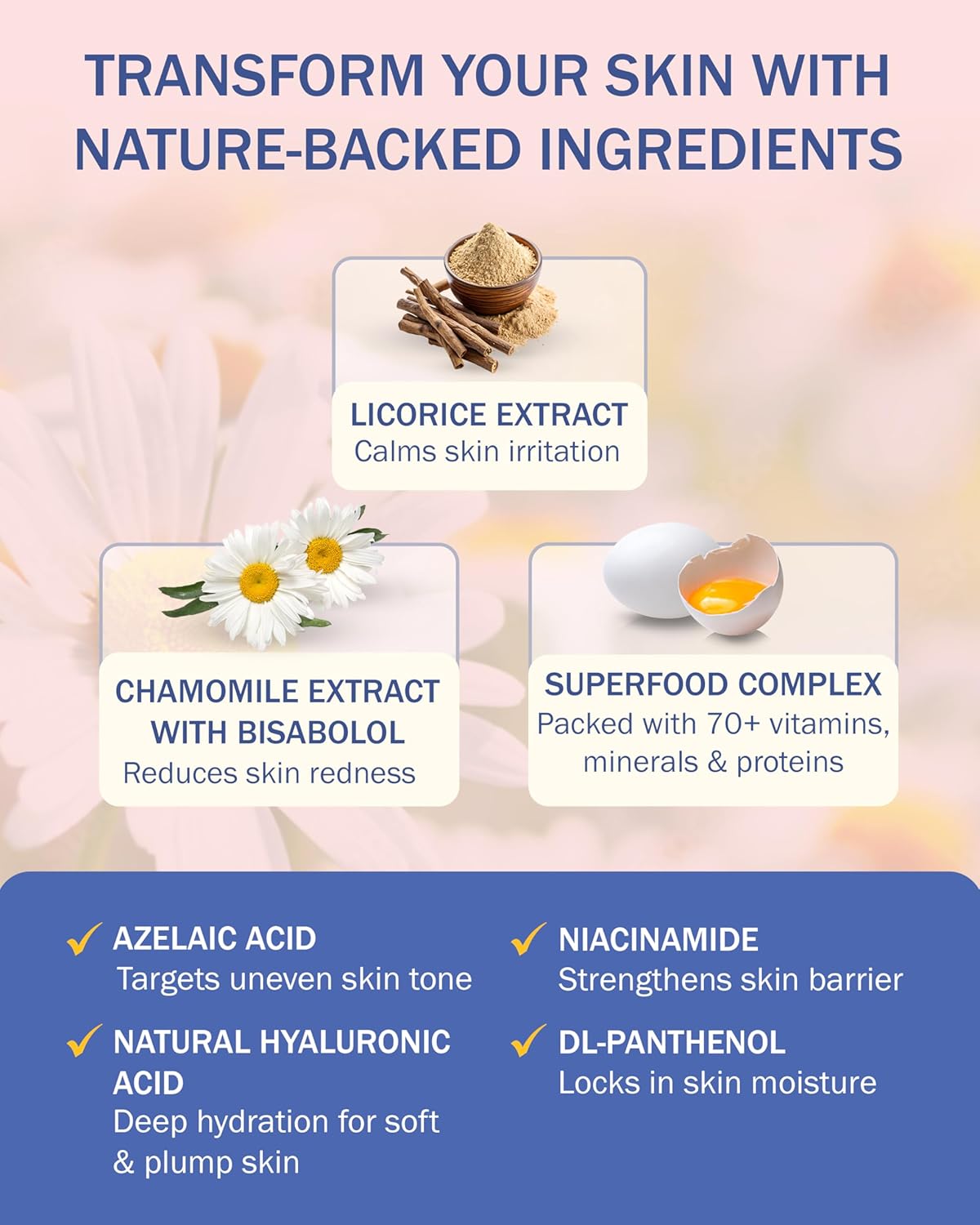 • Deep Hydration in Every Drop: Formulated with 10% Azelaic Acid and niacinamide, the facial serum unclogs pores, locks in moisture, supports skin regeneration, and prevents discoloration while deeply nourishing the skin for a more even, youthful complexion.