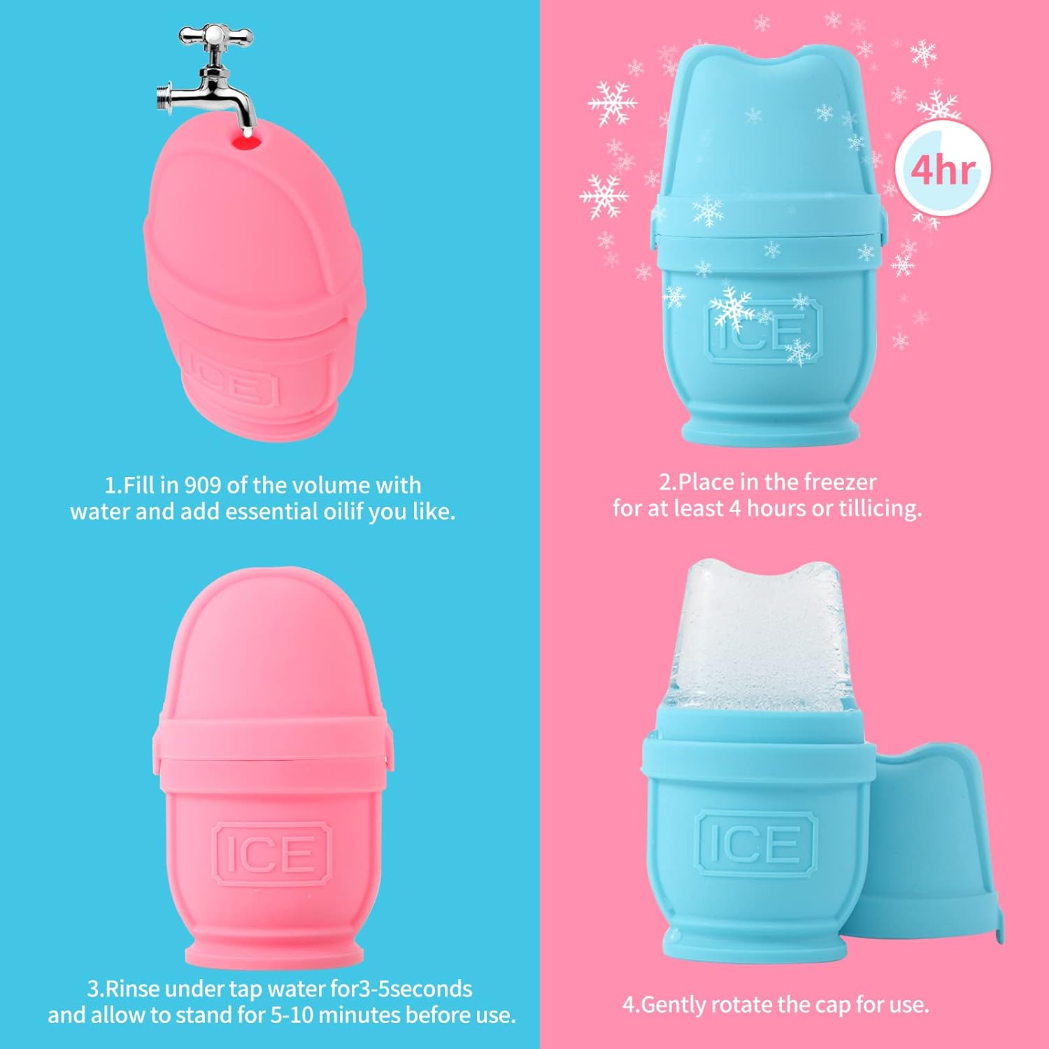 2 Packs Face and Body Ice Roller, Silicone Ice Cube for Puffiness, Pain Relief, Cold Therapy Ice Cup Molds Massage Tool