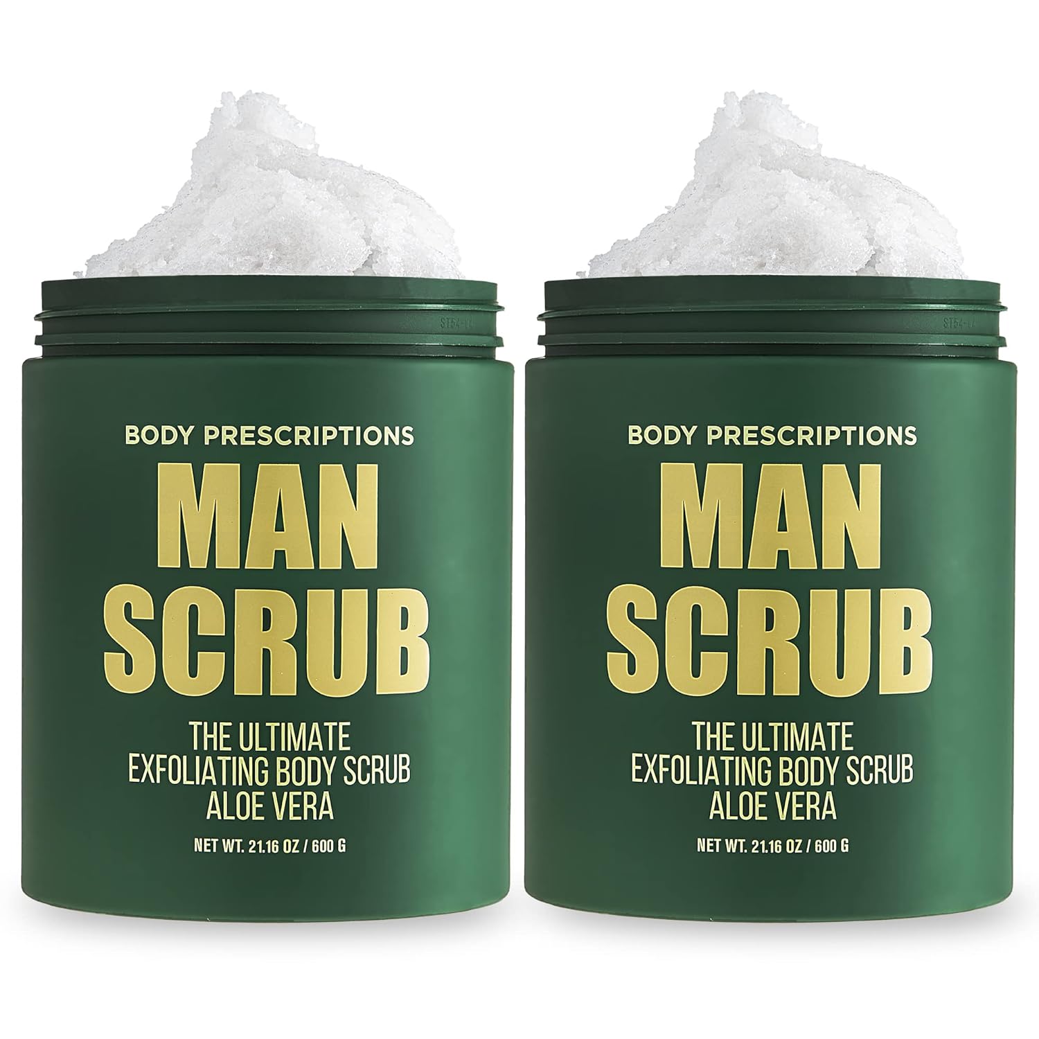 • RELAX + REFRESH: Delight your senses and relax at home with this 2 pack, 21.06 oz each ultimate exfoliating body scrub from body prescriptions. The “Man Scrub” comes in a largejar with an easy-to-use twist off top.