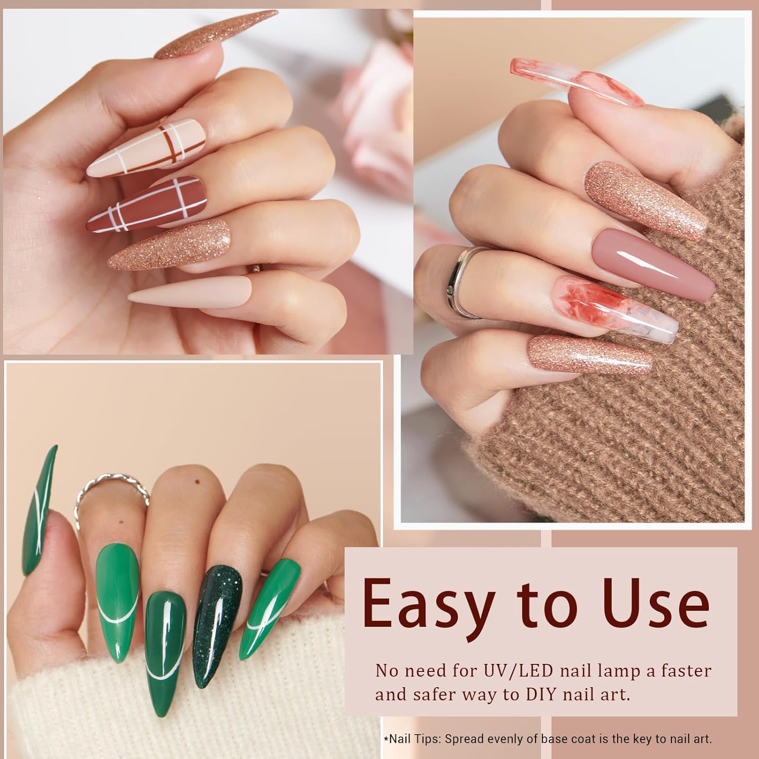 • 💅【No Need Nail Dryers & Easy to Use】Dip powder nail starter kit doesn't need an LED nail lamp to cure, dry faster, and be skin-friendly, which can avoid turning skin black and damaging nails. DIY your beautiful nails anytime, an ideal choice for professional manicurists and nail starters that make beautiful nails to catch the guys' eyes.