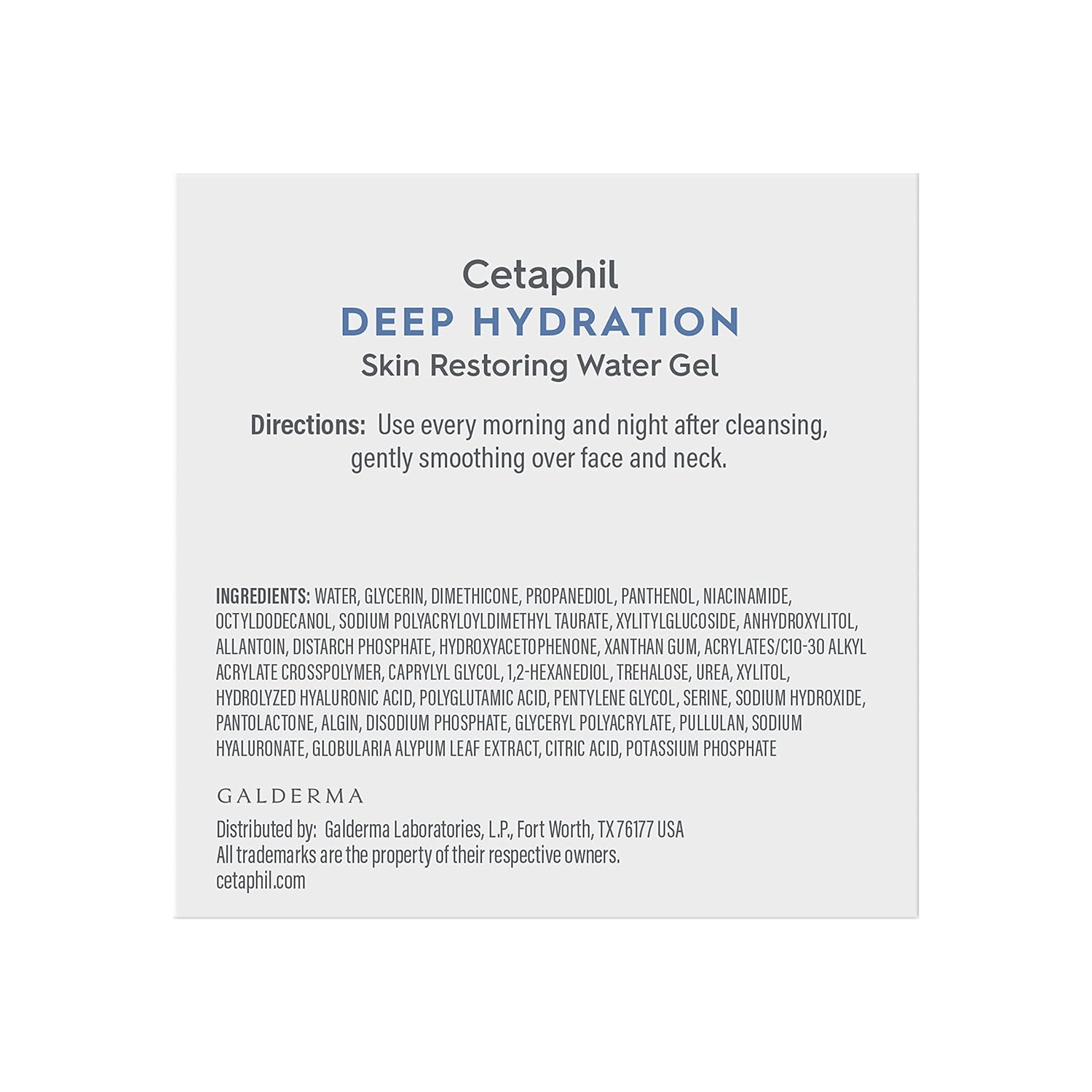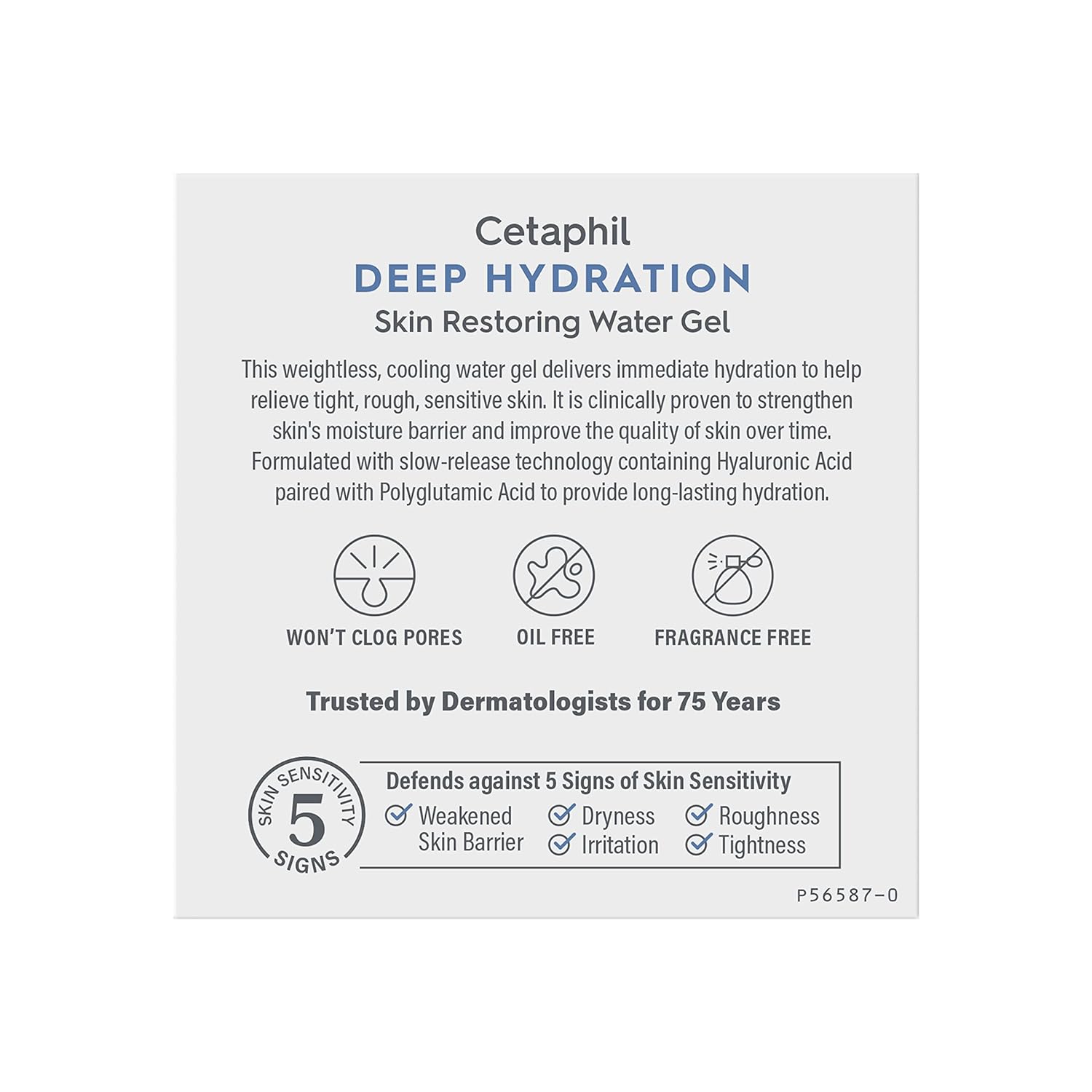 • CETAPHIL DEEP HYDRATION SKIN RESTORING WATER GEL: Cooling, weightless water gel clinically proven to instantly boost the skin's water content and maintain hydration for 72 hours, improves the quality of sensitive skin