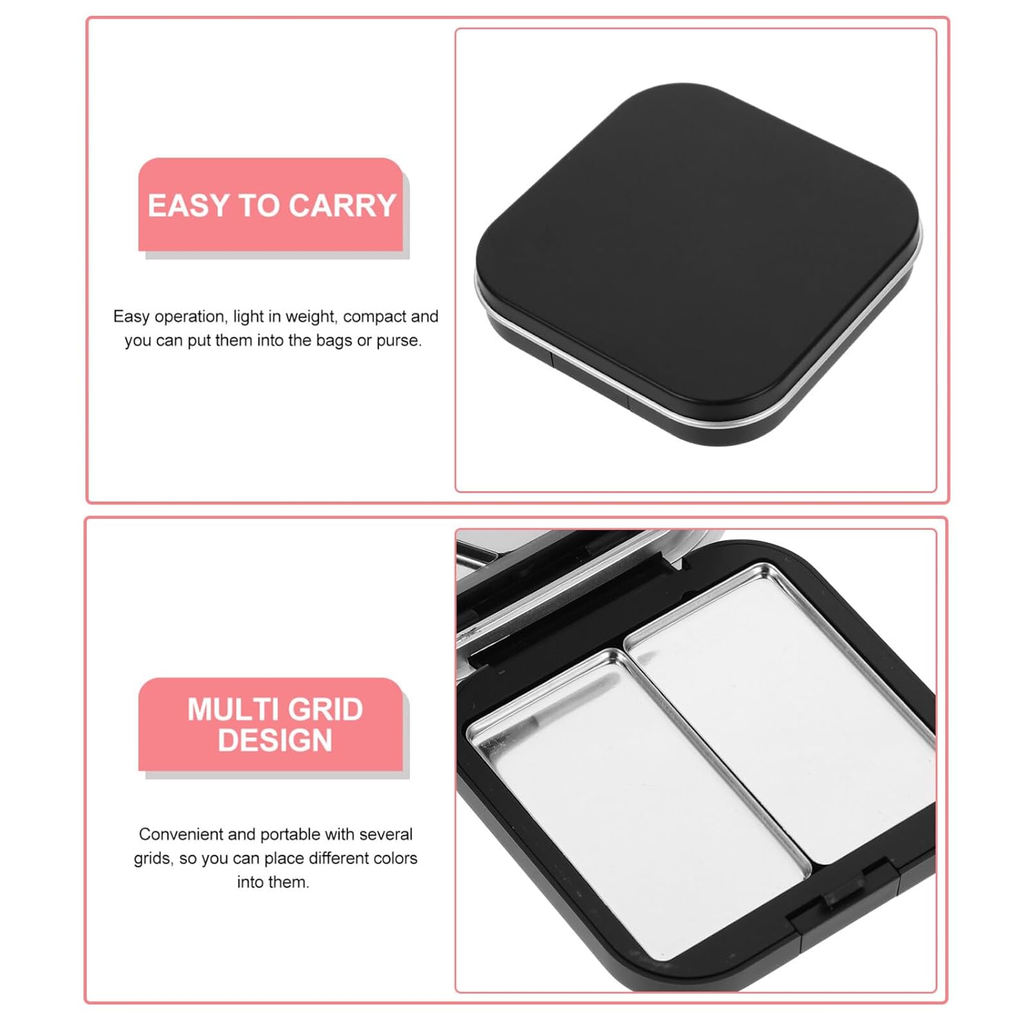 • Convenient and Portable: The eyeshadow box features several grids, allowing you to place different colors into them, making it convenient and portable for on-the-go use