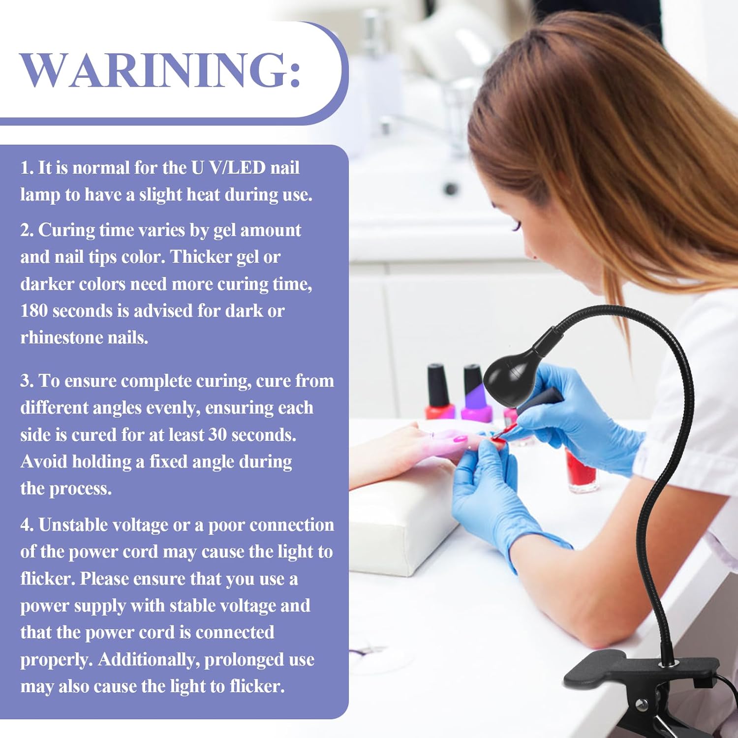• Flexible Led Light for Nails: Saviland mini nail lamp has a flexible design and a sturdy clip. You have the flexibility to adjust the angle and height you need and don't have to worry about awkward angles since you can clamp it directly to your desk or wherever you find most convenient. Solve the difficulty of flash cure lamp, and adjust the use angle at will. The mini gel nail lamp is convenient to carry and travel. Perfect for any nail art design