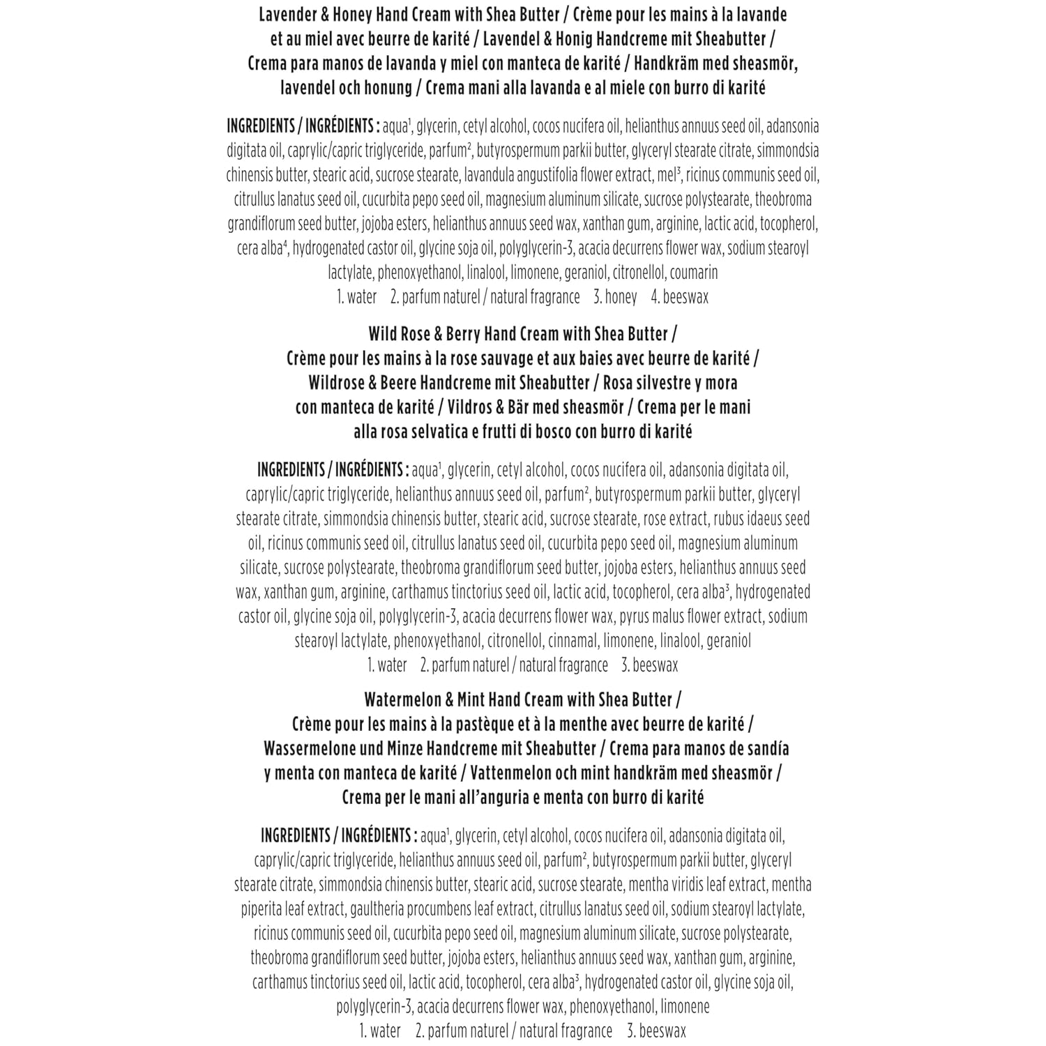 • THREE DELIGHTFUL SCENTS: Hand cream set includes three gorgeous fragrances—Lavender and Honey, Wild Rose and Berry, and Watermelon and Mint—to indulge the sense while softening rough, dry hands