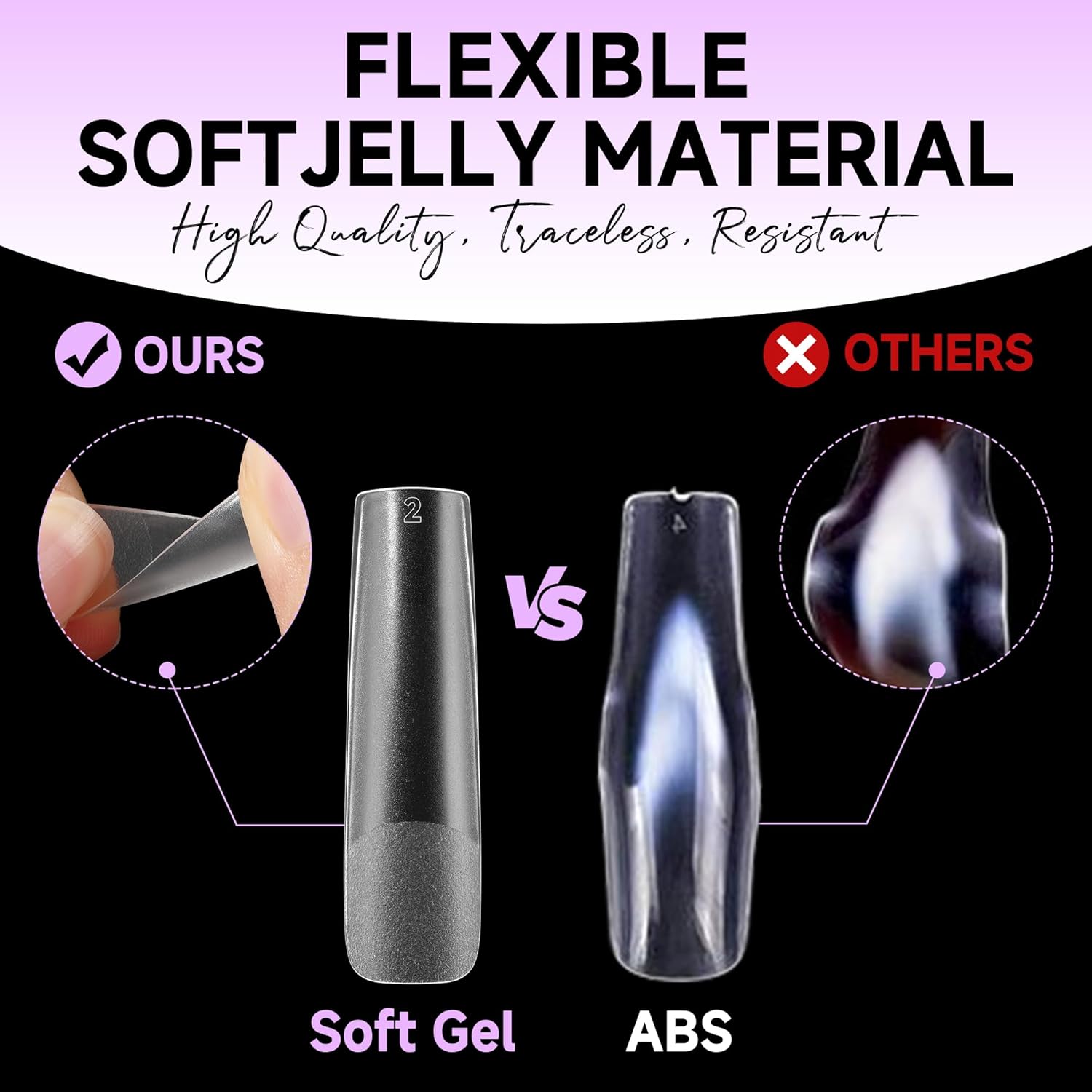 • ❤️Long Square Tip with No Trace :The fake nails is gelly soft tips and will make no trace even bend, bright clear you can more easily press, trim, paint flat false nails to make your dream nails shape. Real DIY manicure gel tips.