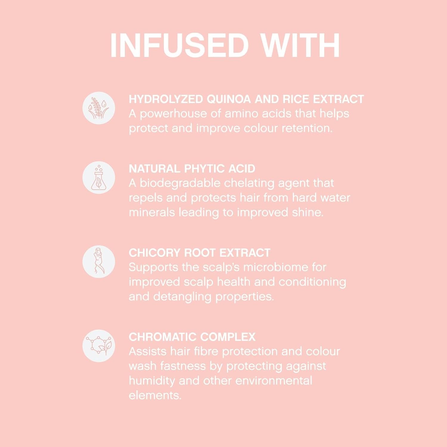 • Acidic pH Shampoo: Our pH balanced shampoo gently purifies without stripping colour, keeping your hair nourished and hydrated