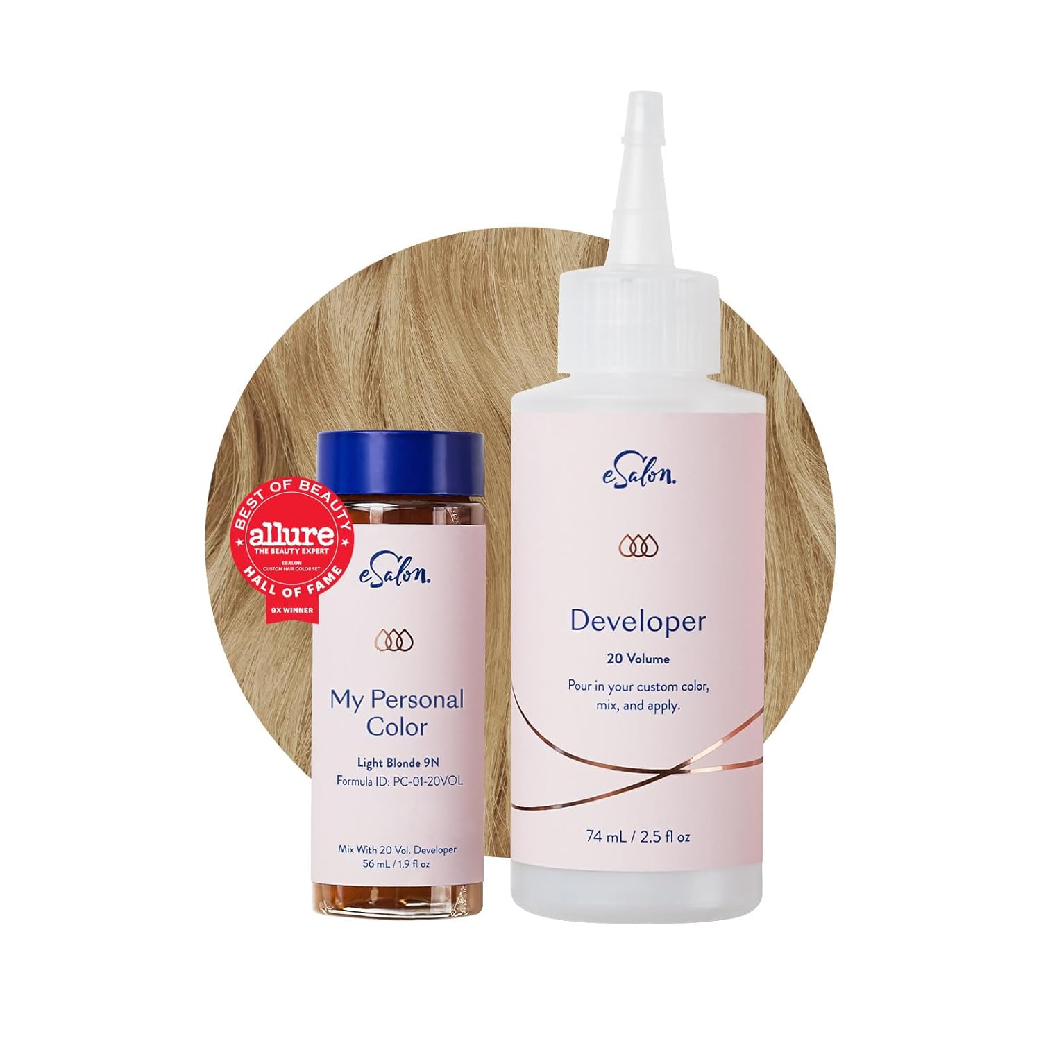 eSalon Permanent Hair Color & Hair Dye Complete Kit - Light Blonde - Personal Colorist Kit for Up To 100% Gray Coverage for All Hair Types - Professional-Grade Ammonia-Free Hair Dye