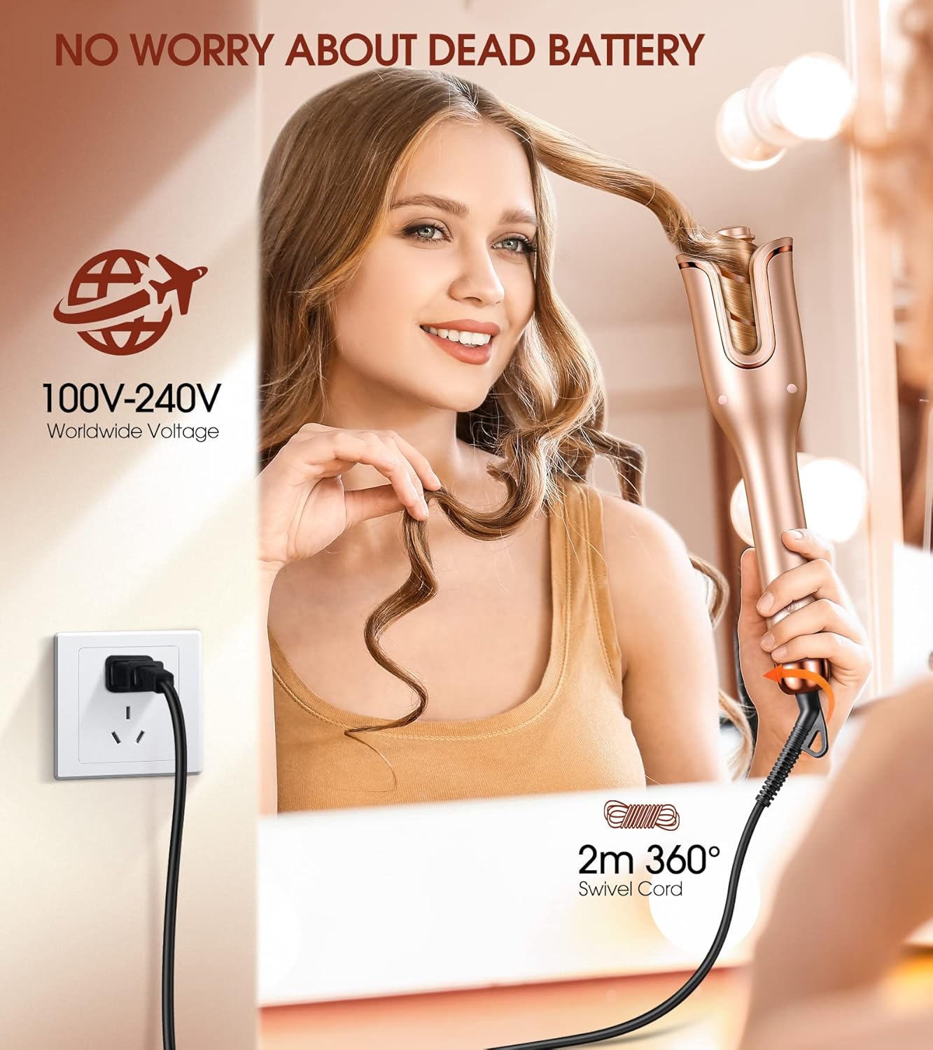 • 【No Dead Battery & 30mins Auto Shut-off】Upon market research, we found that 95% of cordless curling irons cannot maintain a complete curl due to weak batteries. There is no need to worry about the dead battery because we specially design 2m swivel power cord for this automatic hair curler. This hair curling wand will automatically shut off if no operation detected within 30mins, maximum your safety, give you a stress-free operation. Please contact us if need any support.