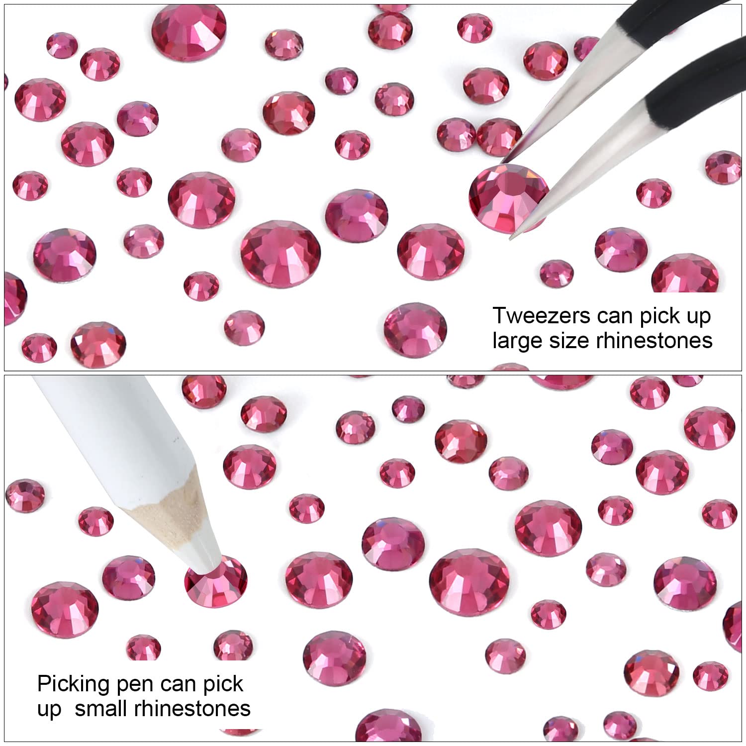 4240Pcs Flatback Rose Rhinestones Glass Crystal Diamonds for Nail Art Face Jewels Sparkly Round with Tweezers and Picking Pen (SS6~SS20 Set)