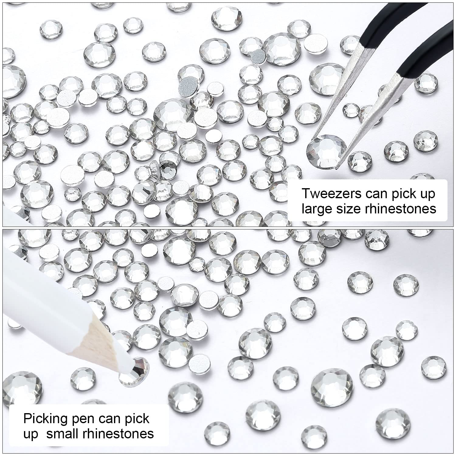 • 💎Use tweezers and Picking Pen gem picker to pick rhinestones, There is no glue on the bottom, additional nail gel is required, or other professional glue for makeup or nails. Can use E6000 super glue to fix on crafts, art decoration. not hotfix.