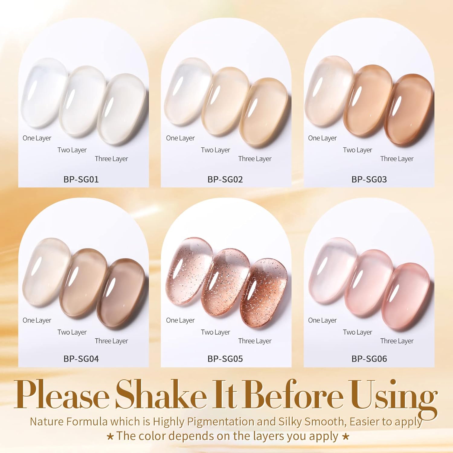 Born Pretty Jelly Gel Nail Polish Nude Set Crystal Transparent Translucent Sheer Clear 6 Colors Gift Collection Manicure Kit