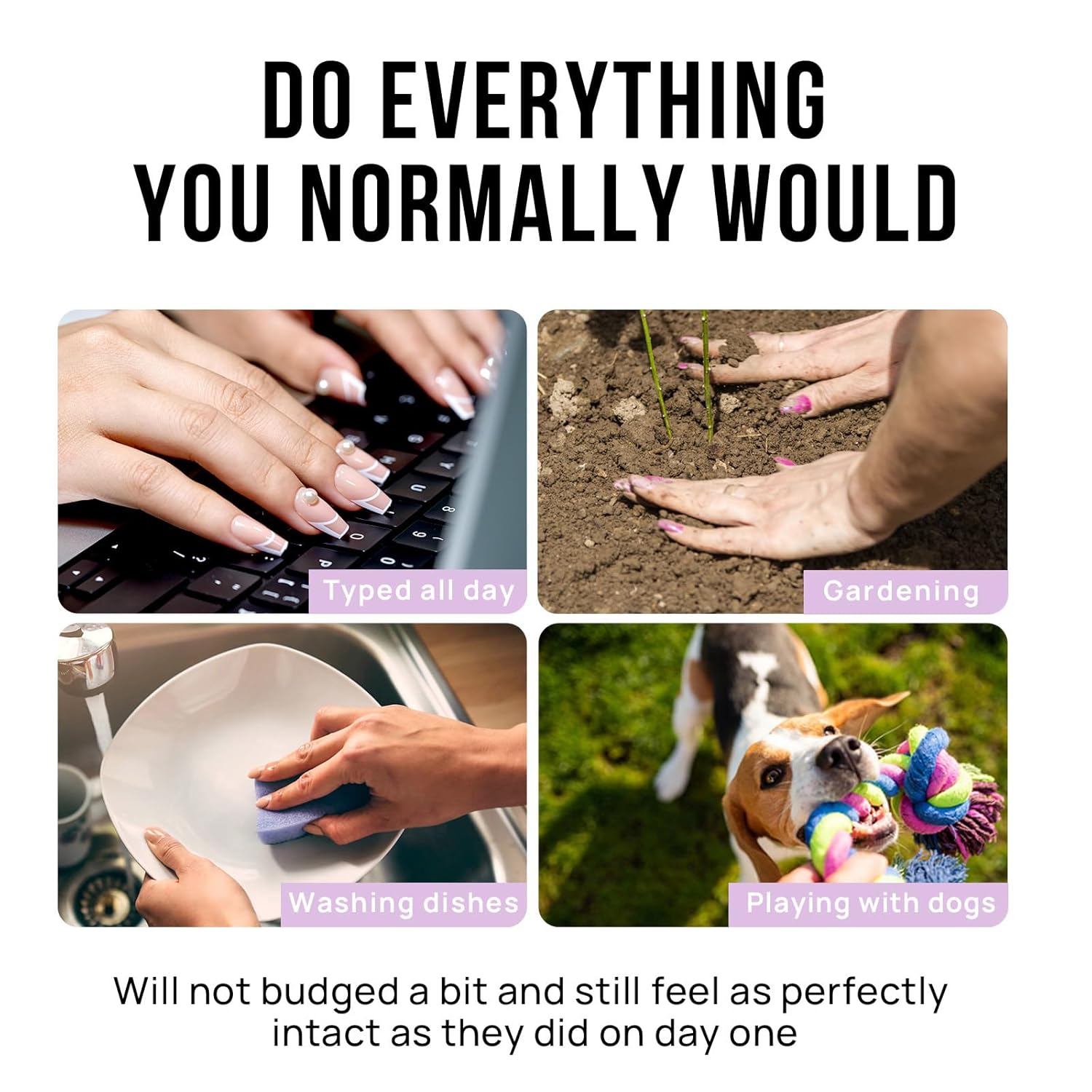 • How Natural They Are:These glue on nails medium are made by soft gel which is soft and flexible, zero pressure on your nail beds and feel like real nails. Supremely fit the nail bed with a gentle flex and a seamless cuticle line