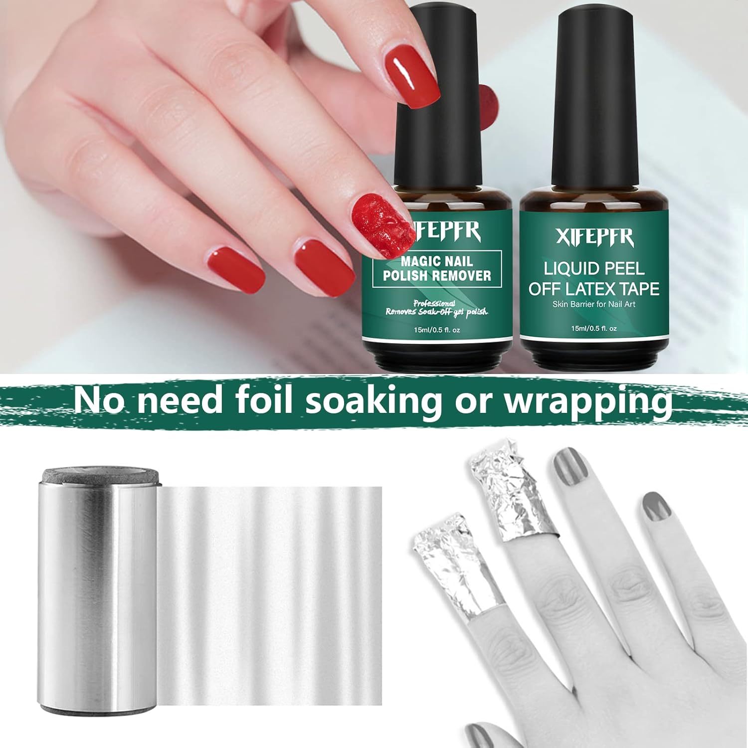• Gel Nail Polish Remover Kit: This gel polish remover kit includes 2 pack gel nail polish remover, liquid peel off latex tape, cuticle oil pen, cuticle pusher, cuticle peeler, nail file, gel polish remover wipes and nail cotton pads. The all-in-one kit helps you quickly remove gel nail polish, you can easy manicure at home, no need to go to a professional nail salon, saving time and money.