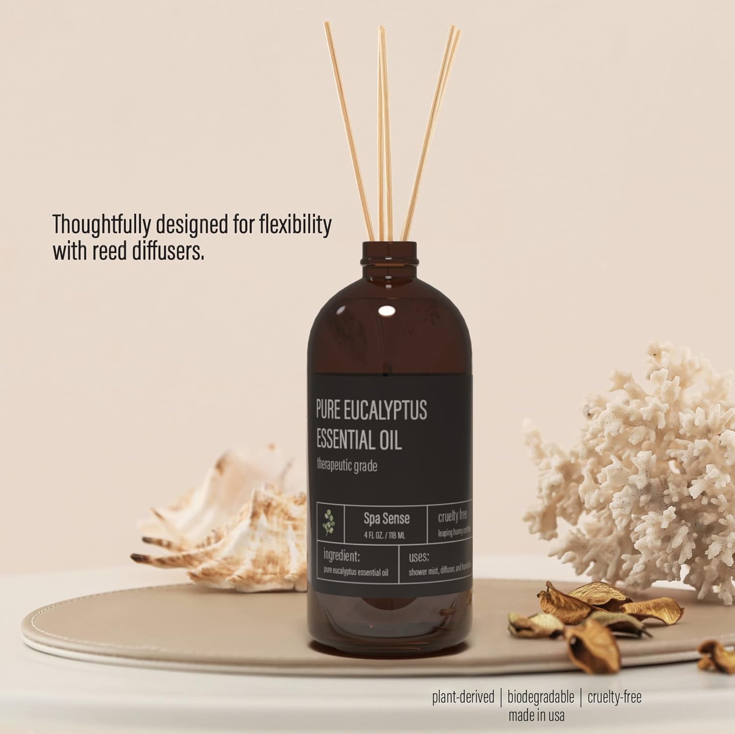 • 100% Pure Eucalyptus Oil - Spa Sense aromatherapeutic eucalyptus oil spray is made entirely with therapeutic grade pure eucalyptus essential oil, 100% pure oil, not blended or diluted. Delivers an aromatic and stimulating luxury spa experience in the comfort of your home, refreshing your shower space and personal cleansing routine, Made in USA with globally sourced components