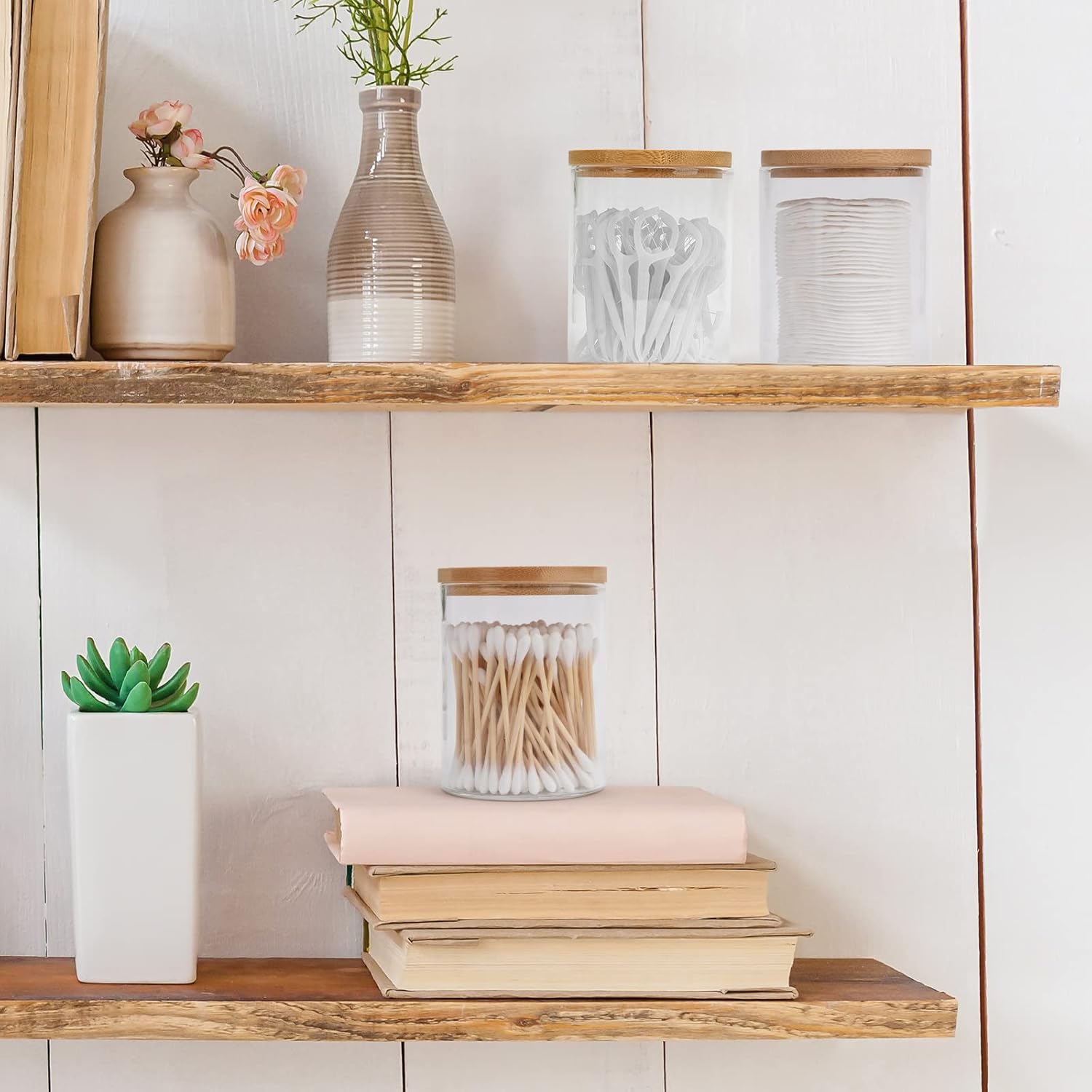 • What You Get: 3 pack Glass Qtip Holder Dispenser; Whether you're looking to declutter your bathroom or simply add a stylish touch, these jars offer the perfect solution. With their ample storage capacity and attractive design, they help you achieve a tidy and organized space while elevating the overall aesthetic of your bathroom.
