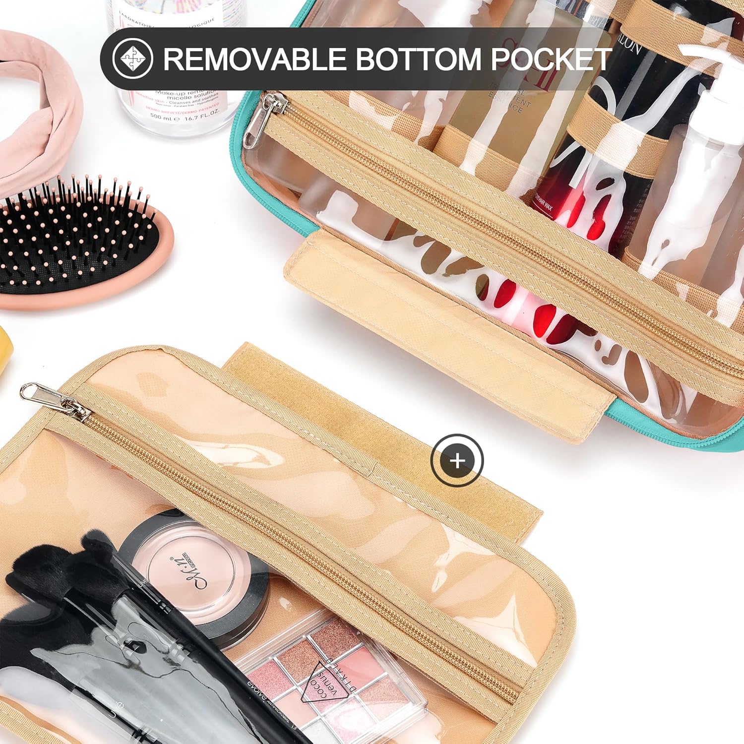 • EASY TO USE - When it is open and hanging, all the transparent pockets inside will be lined up in front of you, you can quickly take out the items you need without making a mess inside. The bottom bag is detachable, you can remove it if it’s too long for you and use it as a separate bag. The trolley strap on the back can fix on the trolley case, you also can put it in the suitcase to free your hands.