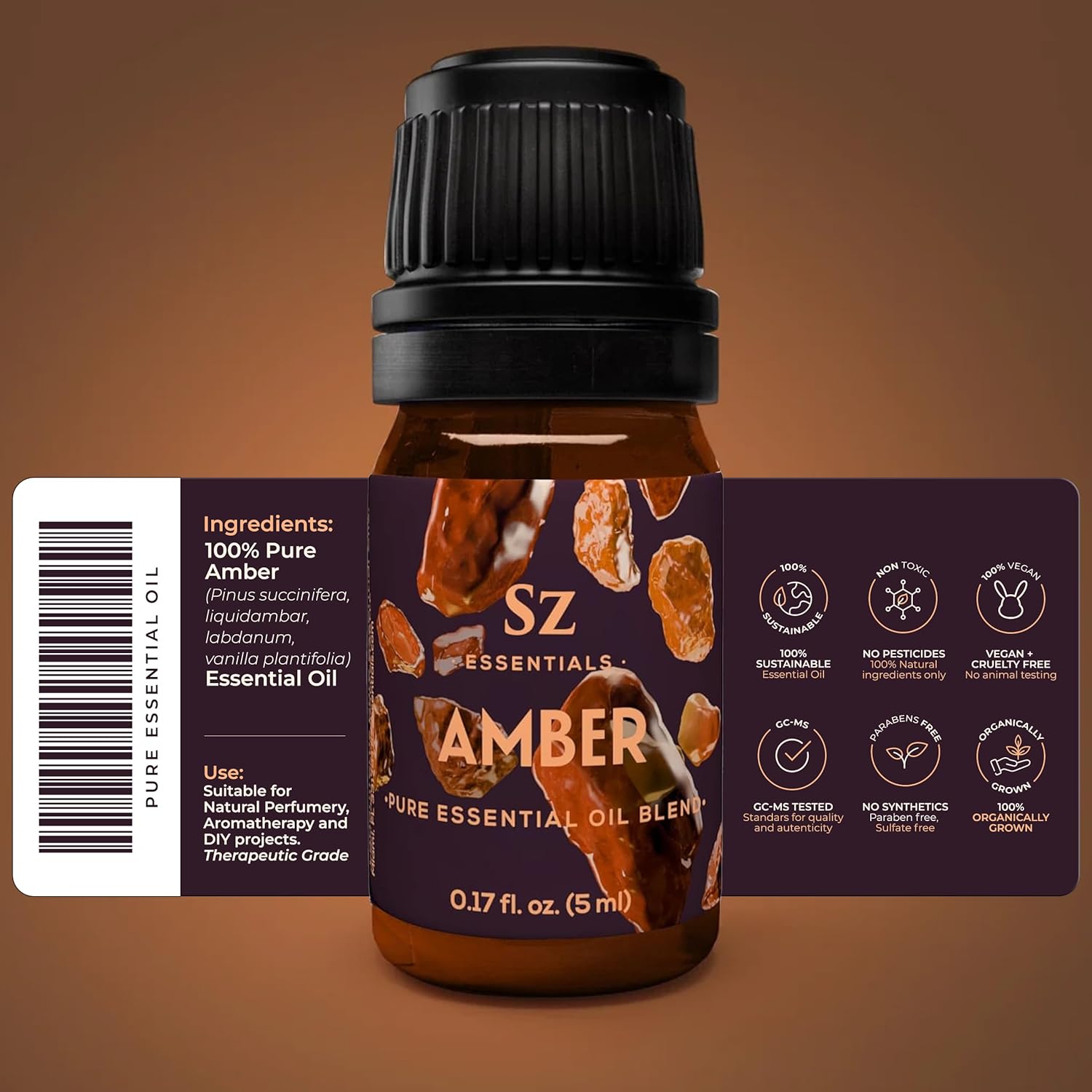 • Versatile Usage: Discover the versatility of SZ Essentials Amber Essential Oil. An experience that rejuvenates your skin and lifts your spirit. Use it as a natural perfume, and add it to homemade candles, soaps, lotions, and more. Its warm, woody scent is an ideal addition to your seasonal aromatherapy routine, especially during fall and winter.