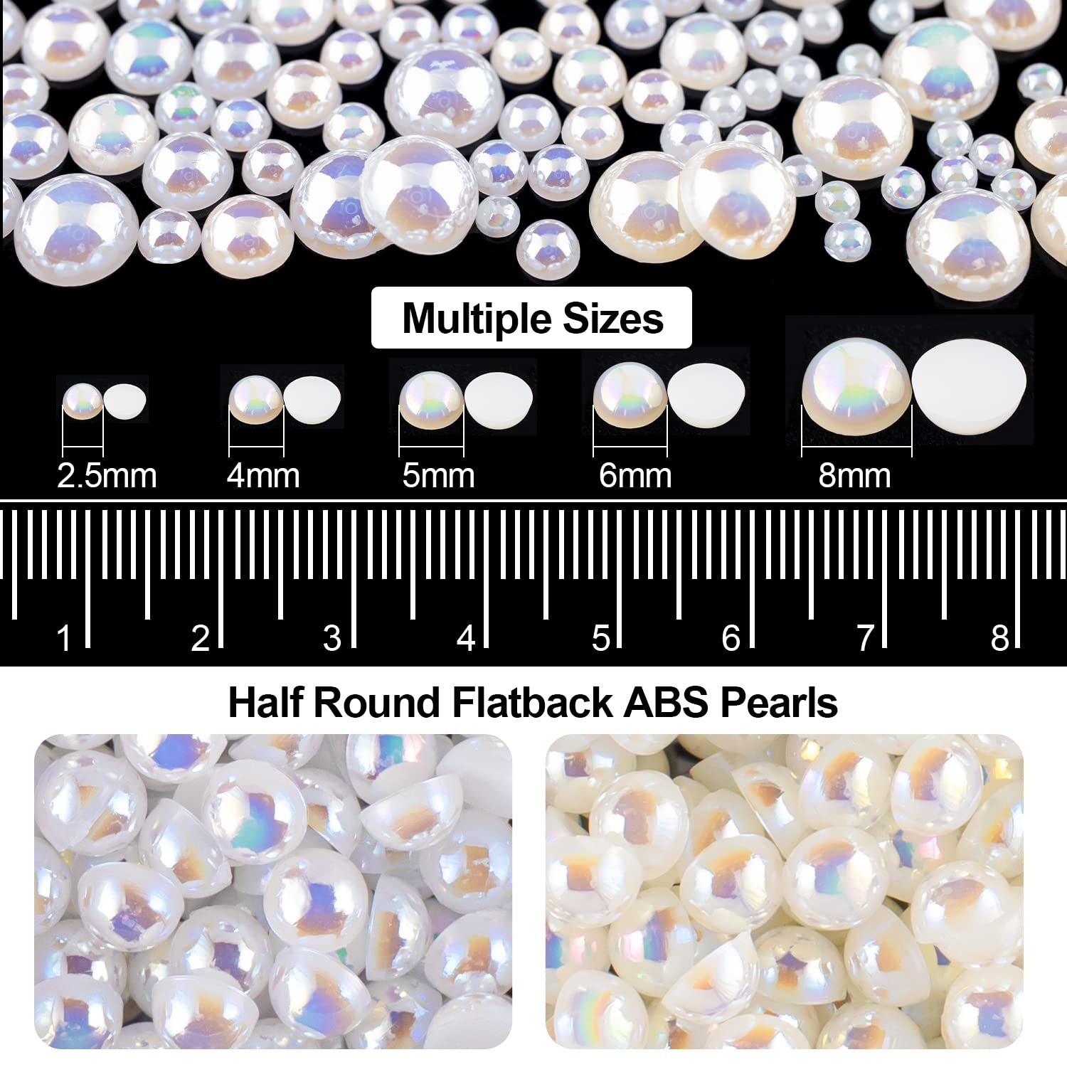 • 💎COLORFUL, MULTI-SIZE AND GREAT AMOUNT -- This Set Provides 12 Colors of Nail Rhinestones With 4 Sizes(2mm, 3mm, 4mm, 5mm), And Flatback Half Round WhiteAB&BeigeAB Pearls With 5 Sizes(2.5mm, 4mm, 5mm, 6mm, 8mm). Approximately 3790 Pcs of Gems Beads in Total.