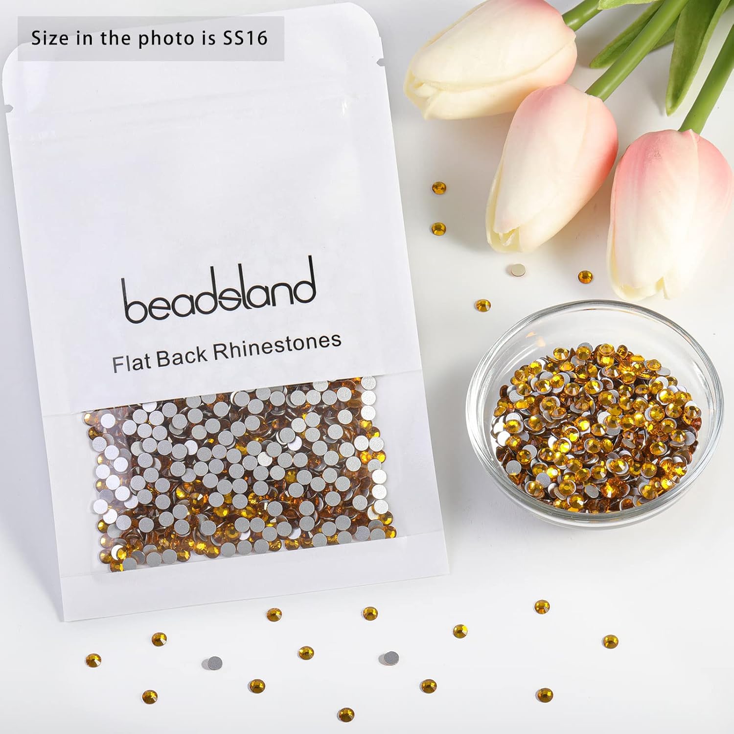 Beadsland 1440pcs Flat Back Crystal Rhinestones Round Gems for Nail Art and Craft Glue Fix, Topaz,SS16,3.8-4.0mm