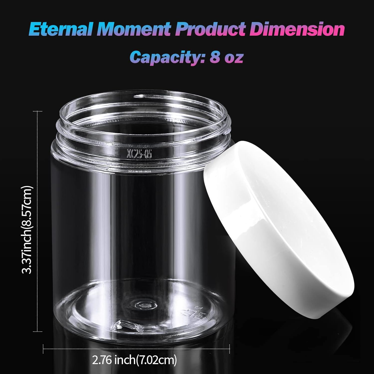 • ★【PERFECT SIZE】: SIZE:2.76 inch diameter by 3.37 inch tall. Capacity: 8 OZ(240ml). Portable to take and fit perfectly into your tote bags, backpack or gym bag. You can take them go anywhere. Eternal Moment cosmetic containers can also be stored on a shelf or displayed to promote a professional ambiance.