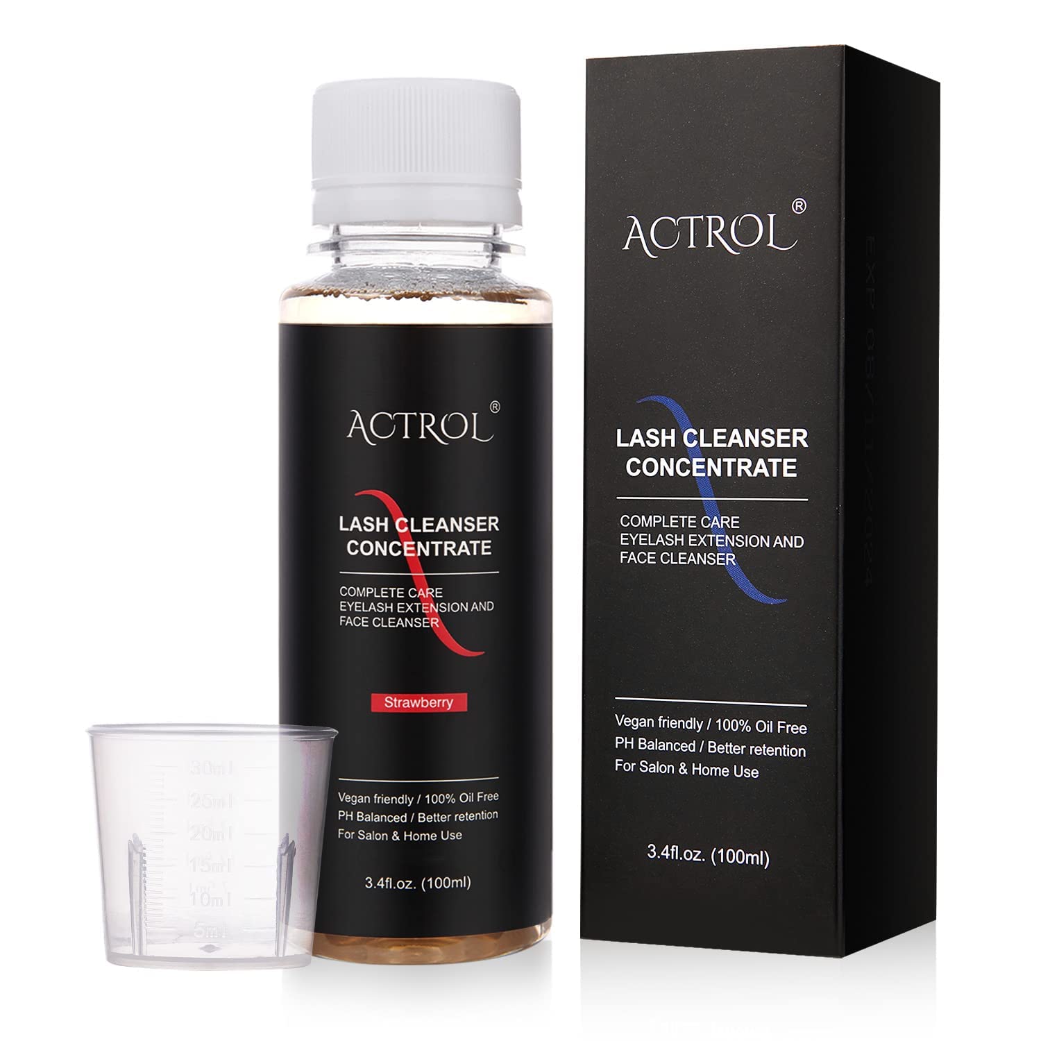Eyelash Cleanser Concentrate 100ml Strawberry Professional Lash Shampoo Foaming Cleanser Paraben & Sulfate Free Non-lrritating Wash for Extensions Lashes Care-Makes 20 Bottles