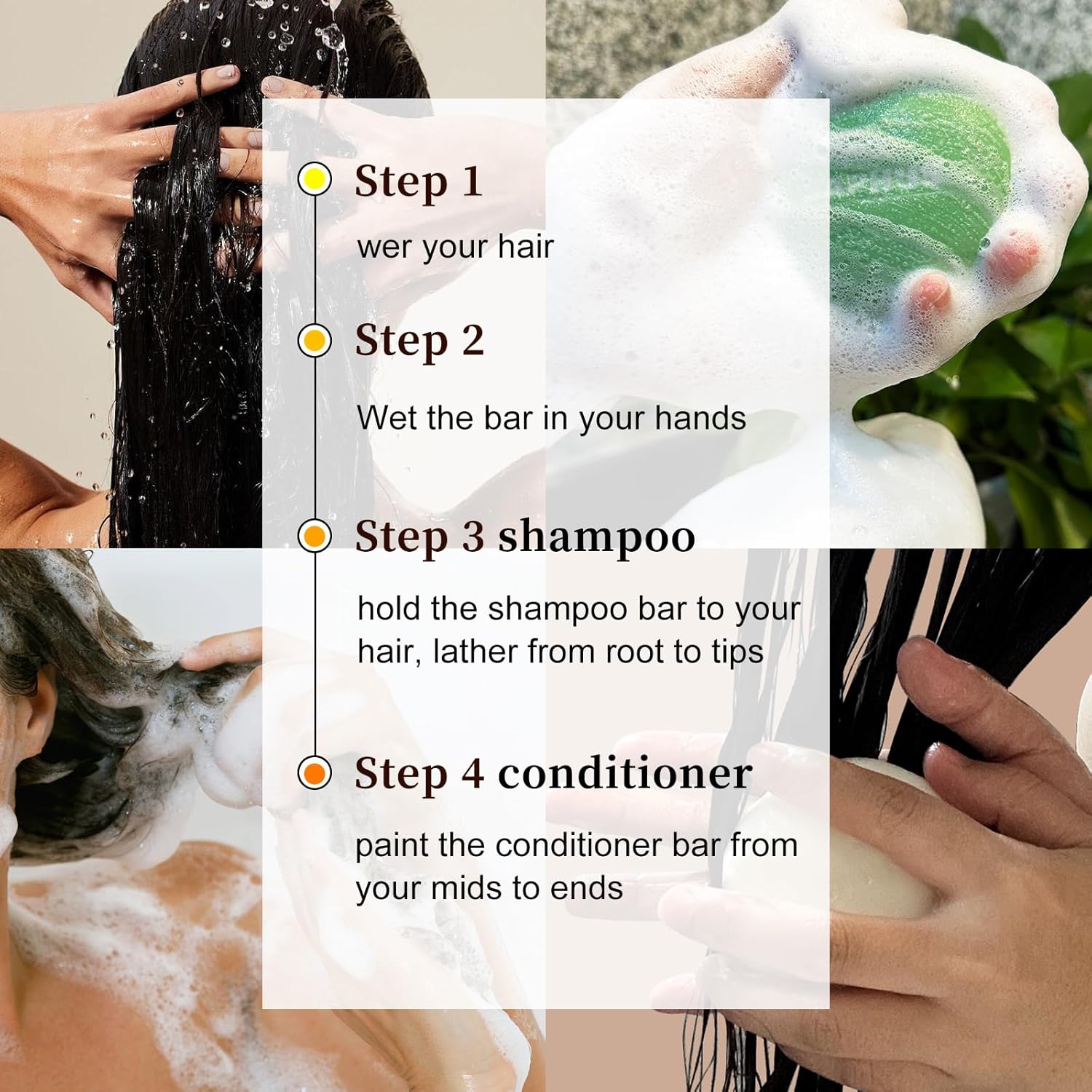 • hair cleansing & repairing: this shampoo and conditioner bar set are designed for hair of all types including kids 3 years and above, especially dandruff and oily hair, gently cleanse the hair, effectively removes grease and buildups, offering clean, healthy, beautiful hair.
