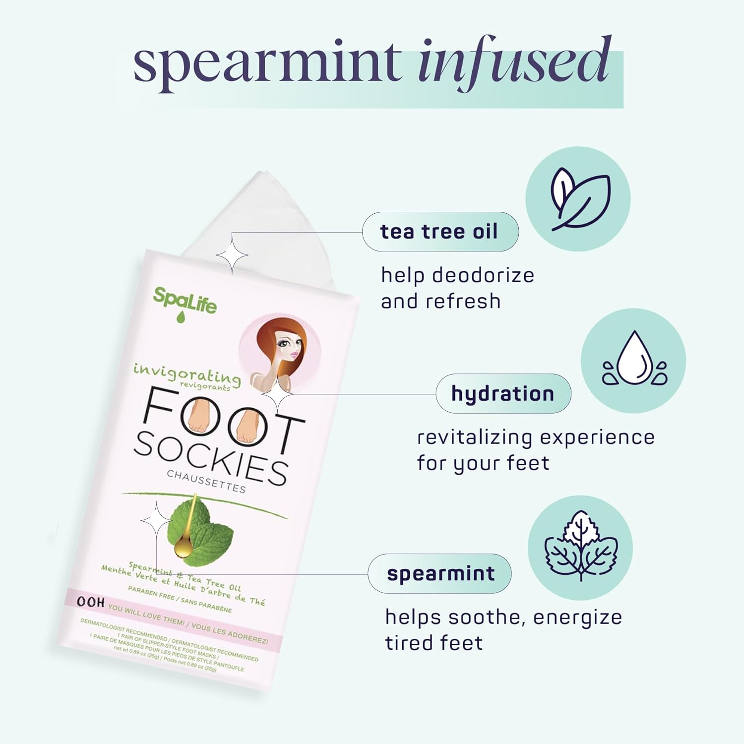 • SOFTER FEET: SpaLife's Spearmint & Tea Tree Oil Foot Sockies, set delivers instant softness and deep hydration. Say goodbye to dry, cracked skin and hello to the rapid joy of pampered feet.
