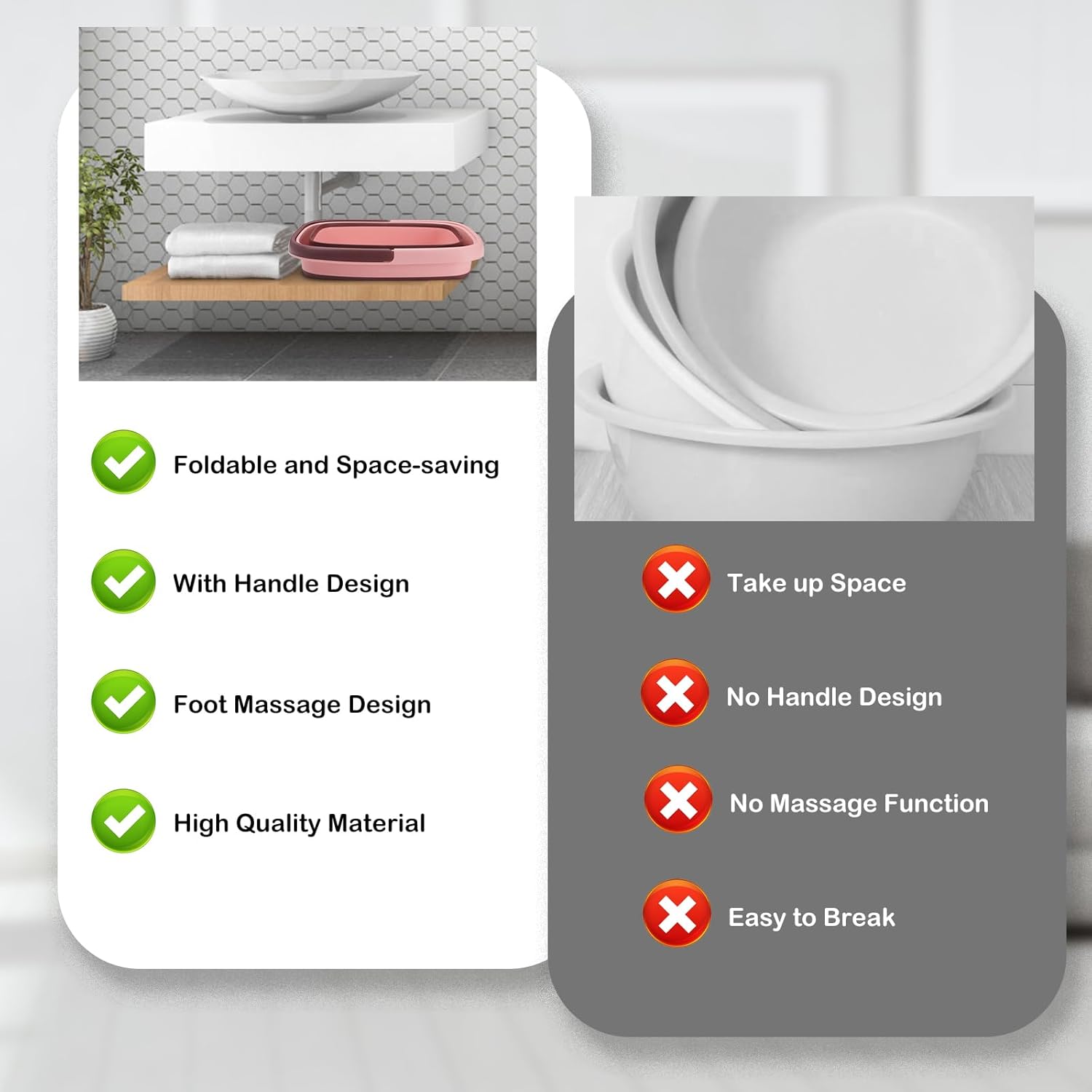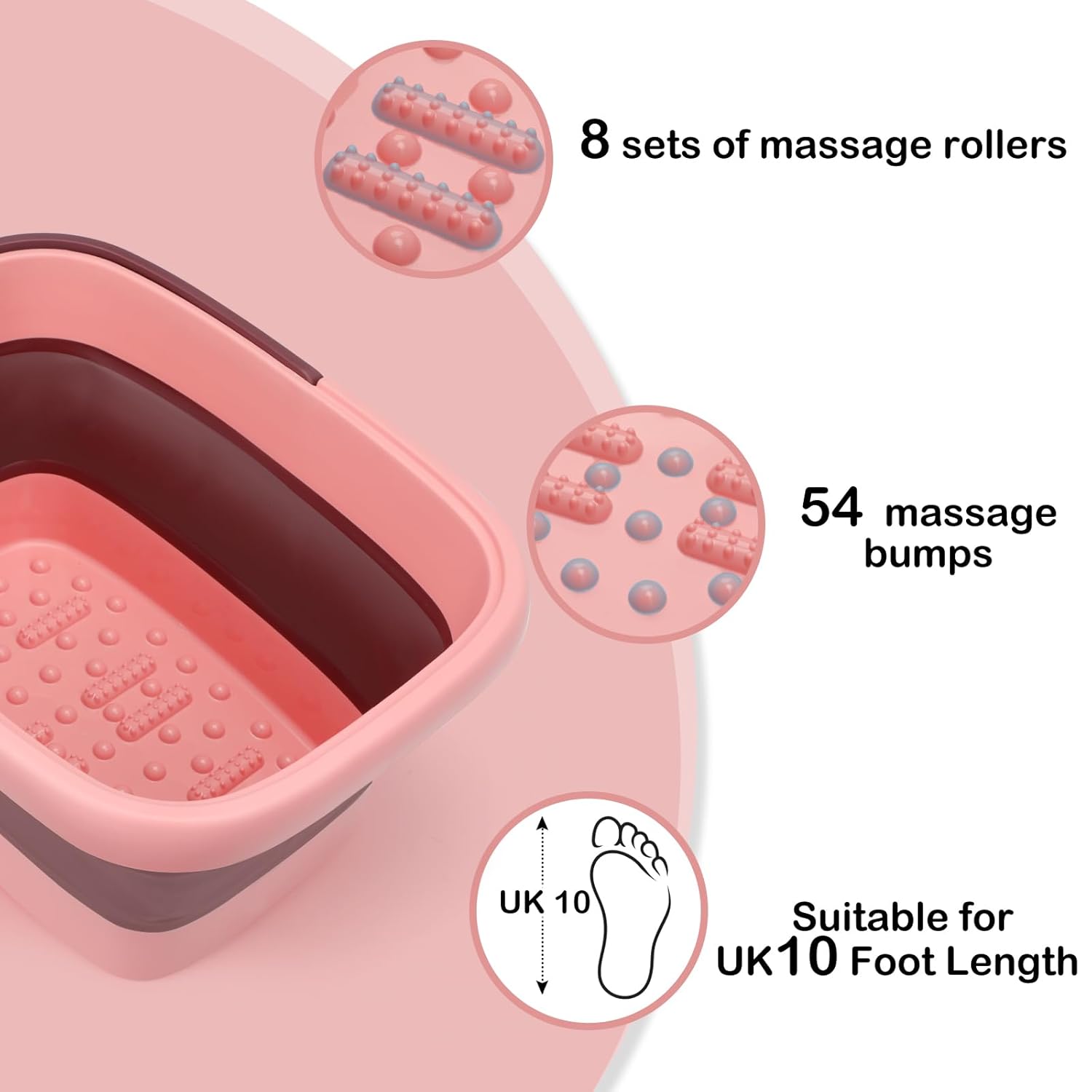Foot Bath Collapsible Foot Soak Tub,Beinilai Collapsible Foot Bath Basin,Multifunction Plastic Basin with Handles,Foot Tub for Soaking Feet-Pink