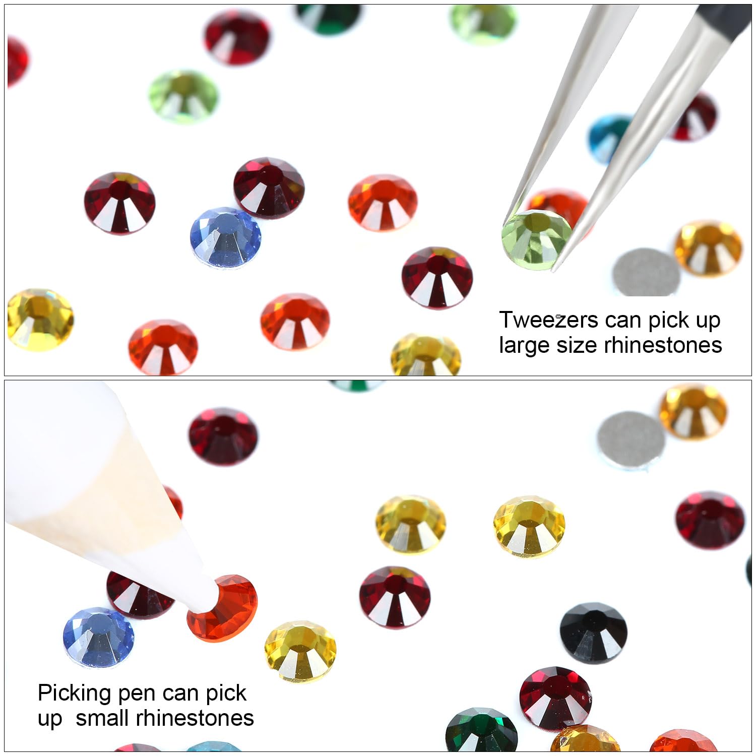 • Use tweezers and Picking Pen gem picker to pick rhinestones, There is no glue on the bottom, additional nail gel is required, or other professional glue for makeup or nails. Can use E6000 super glue to fix on crafts, art decoration. not hotfix.