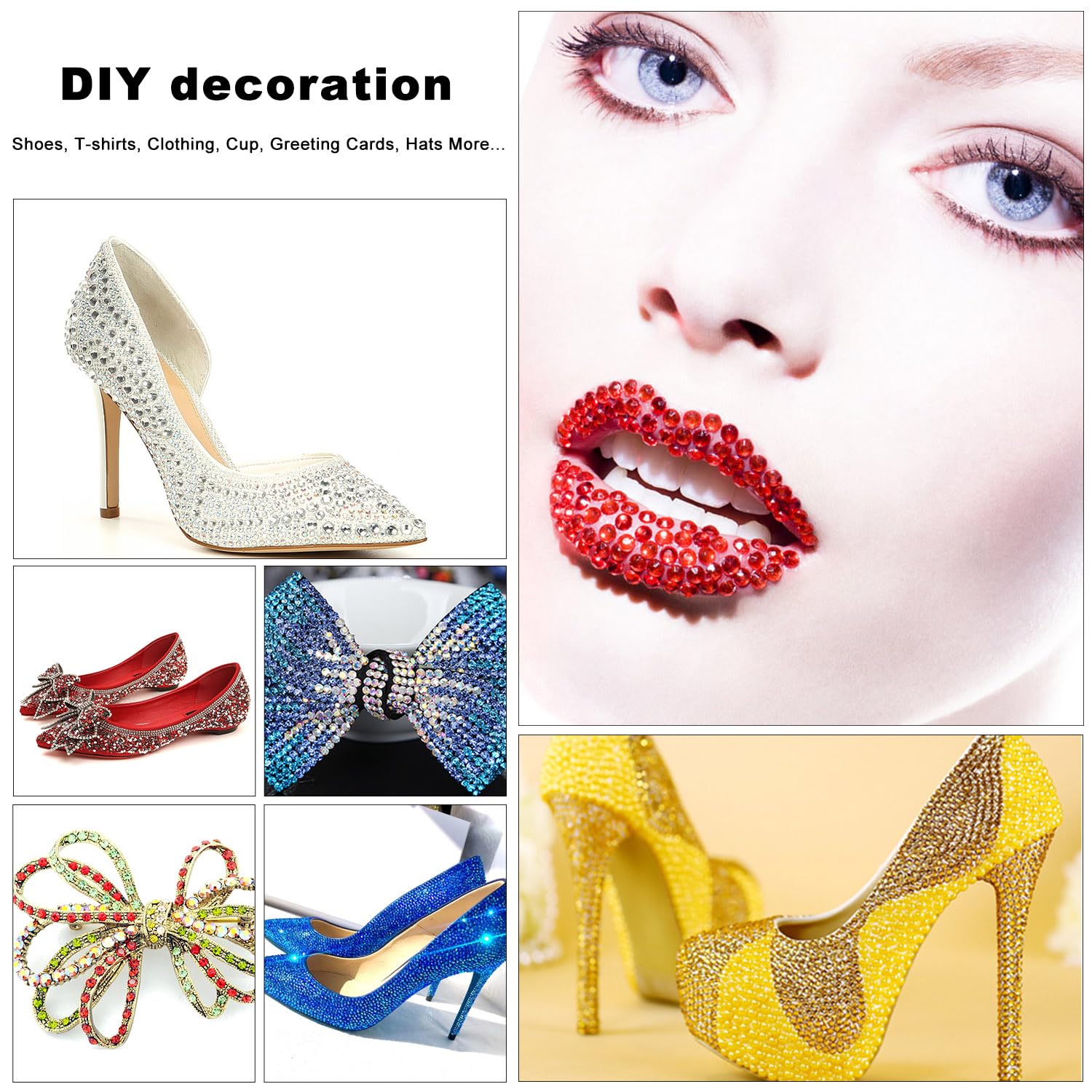 • You can use rhinestones for, Nails, Art, Jewels, Skin, teeth, face, eye, Makeup, tumbler, glass, crafts, cardstock, phone, phone case, plastic, glasses etc. If you are using shoes, clothing, fabric textile type, I suggest you search on Amazon: B09ZQKTW4V