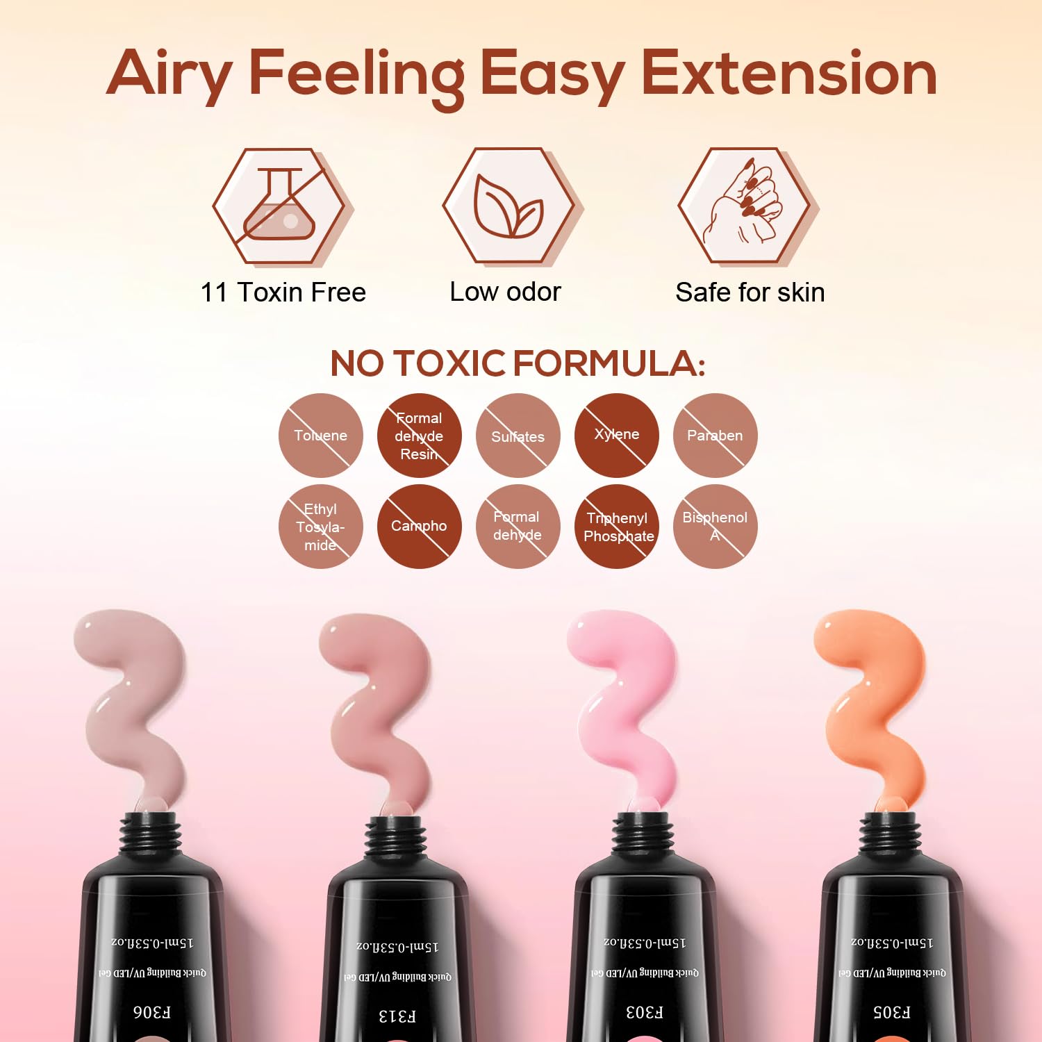 • Healthy,Natural,Strong,Flexible:JEWHITENY poly gel made with non-toxic ingredients keeping your nails healthy with a low odor formula!Has high strength and toughness without cracking or peeling. superior to other nail extension products, and fits your nails seamlessly。The new upgraded formula makes your lengthened nails as flexible, strong and lightweight as natural growing nails.
