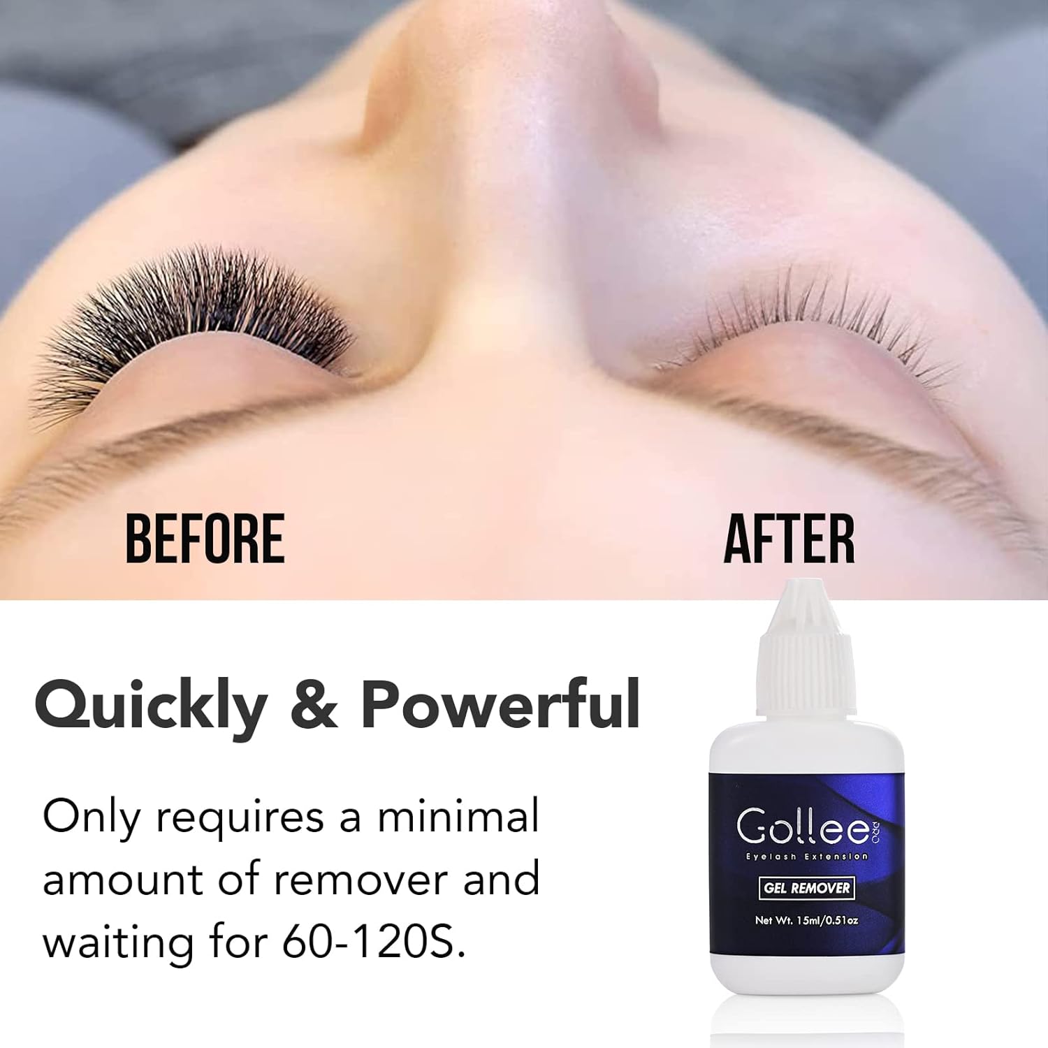 • ✅GOLLEEPRO Lash Remover for Lash Extensions,transparent gel-like, light and delicate texture. Low odor, no tears, mild and pure. Effectively dissolves the adhesive within 60 seconds for easy removal of eyelash extensions.