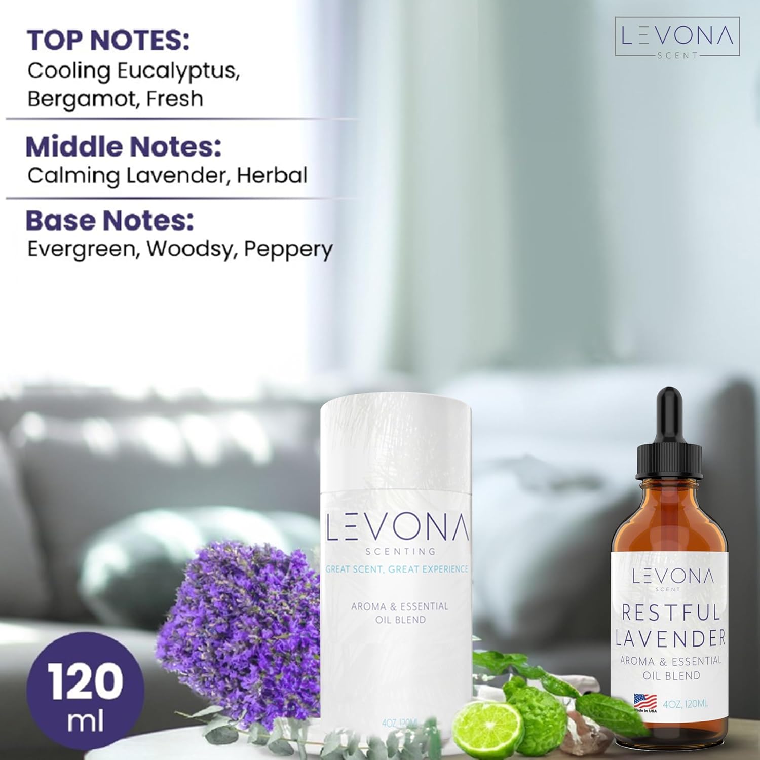 • REFRESHING BLENDS YOU’LL LOVE - Levona Scent's Restful Lavender fills your space with a calming floral aroma. Infused with cooling eucalyptus, bergamot, and fresh notes, it creates a tranquil, soothing environment, perfect for relaxation and unwinding.