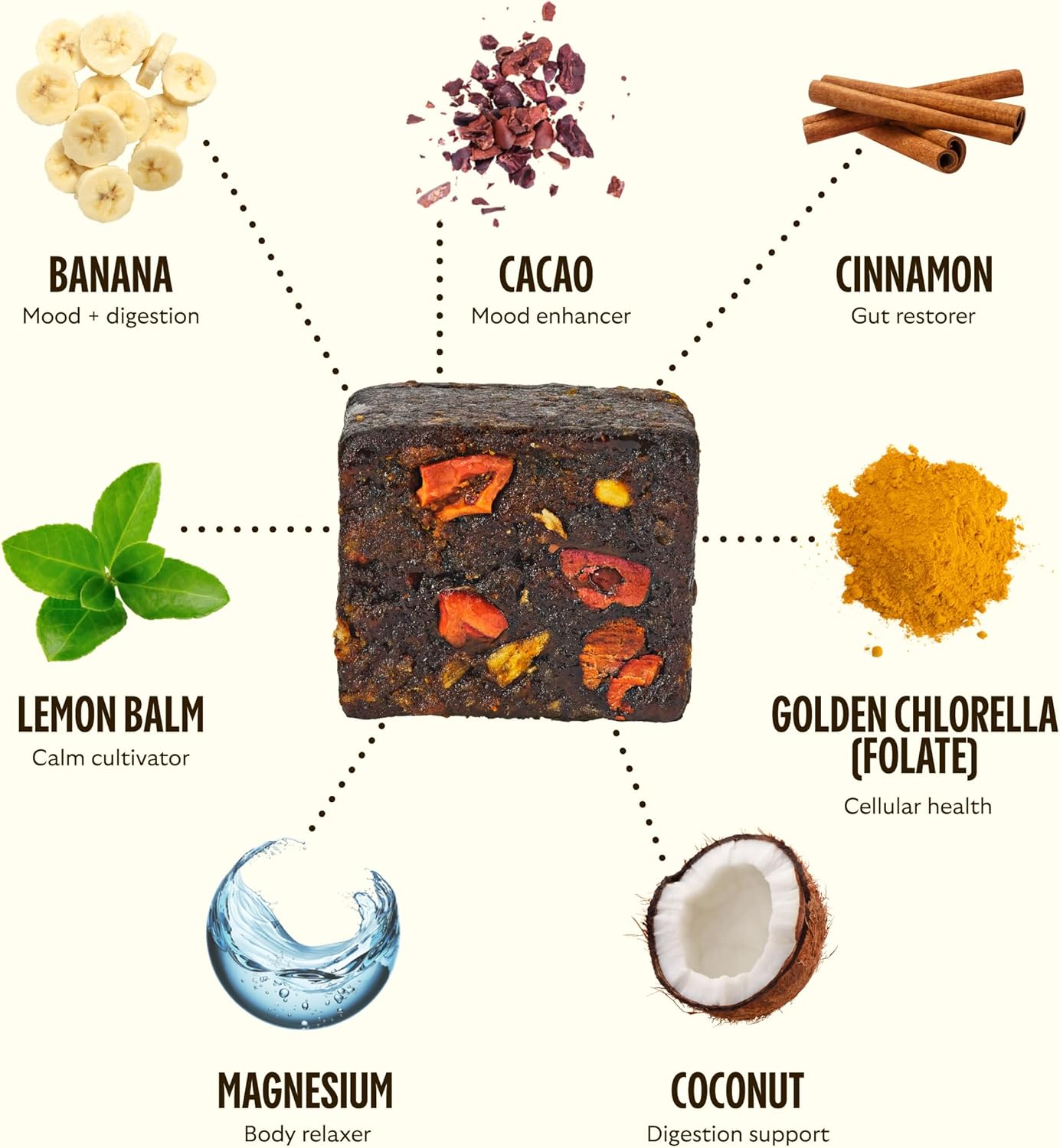 • Body Health: Each plant based bite contains over 15 whole food sourced vitamins, minerals, probiotics, and fiber to support gut health, energy, and beauty.