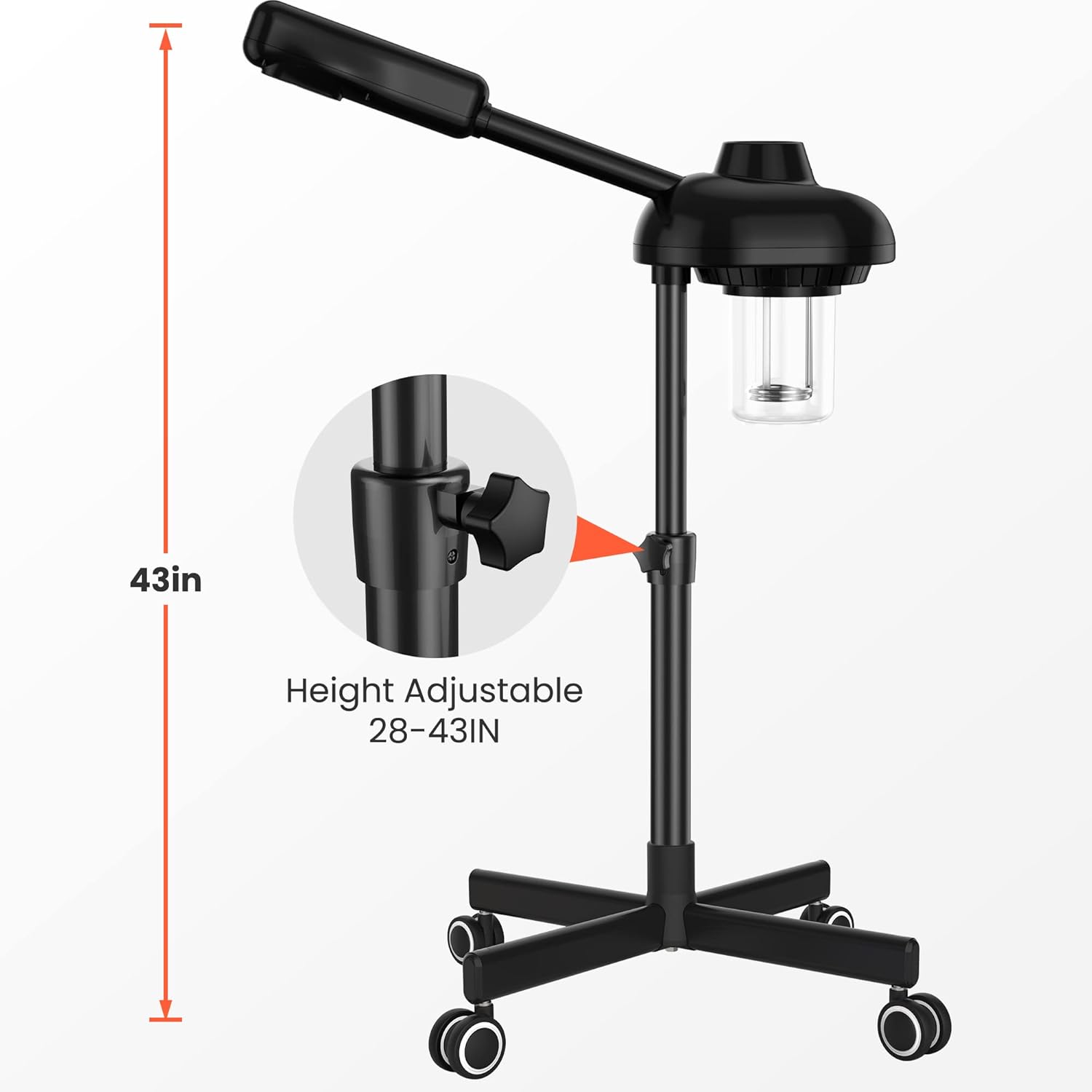 TASALON Steamer on Wheels for Professional Skin Rejuvenation, Facial Steamer Kit for Home, Spa, Clinic - Warm Mist, Ozone Face Humidifier - Pore Opener and Cleanser-Black