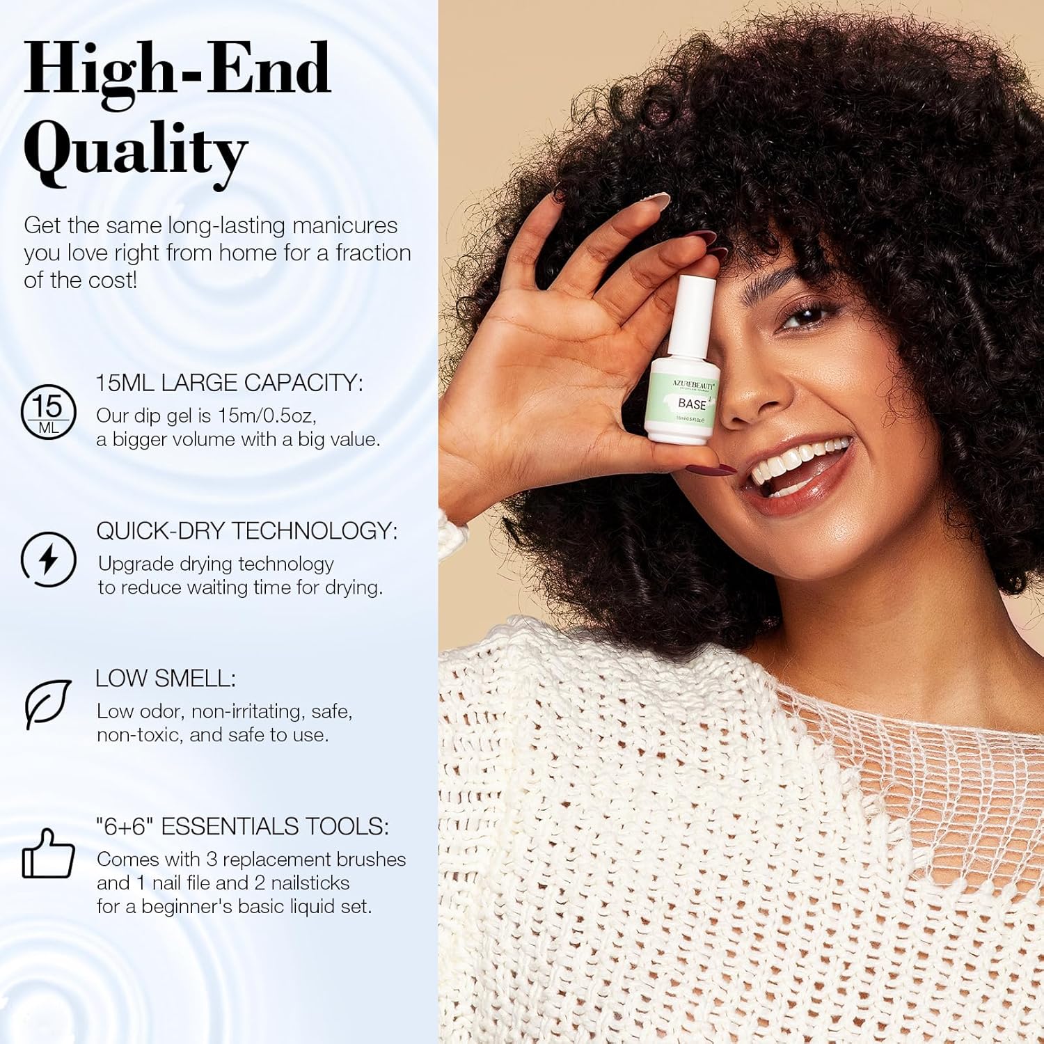 AZUREBEAUTY Dip Powder Liquid Set Bond, Base, Glossy Matte Top Coat, Activator, Brush Saver Dipping Powder Essential Tools No Nail Lamp Needed 0.5Fl oz 15ml 6Pcs
