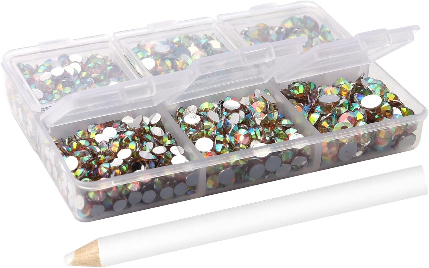 • 3 Sizes Rhinestones Set with Pick Up Pen: 2050 pcs per box. Round flat backs &Non Hotfix, SS10 (3mm) 1100PCS, SS16 (4mm) 600PCS / SS20(5mm) 350PCS.