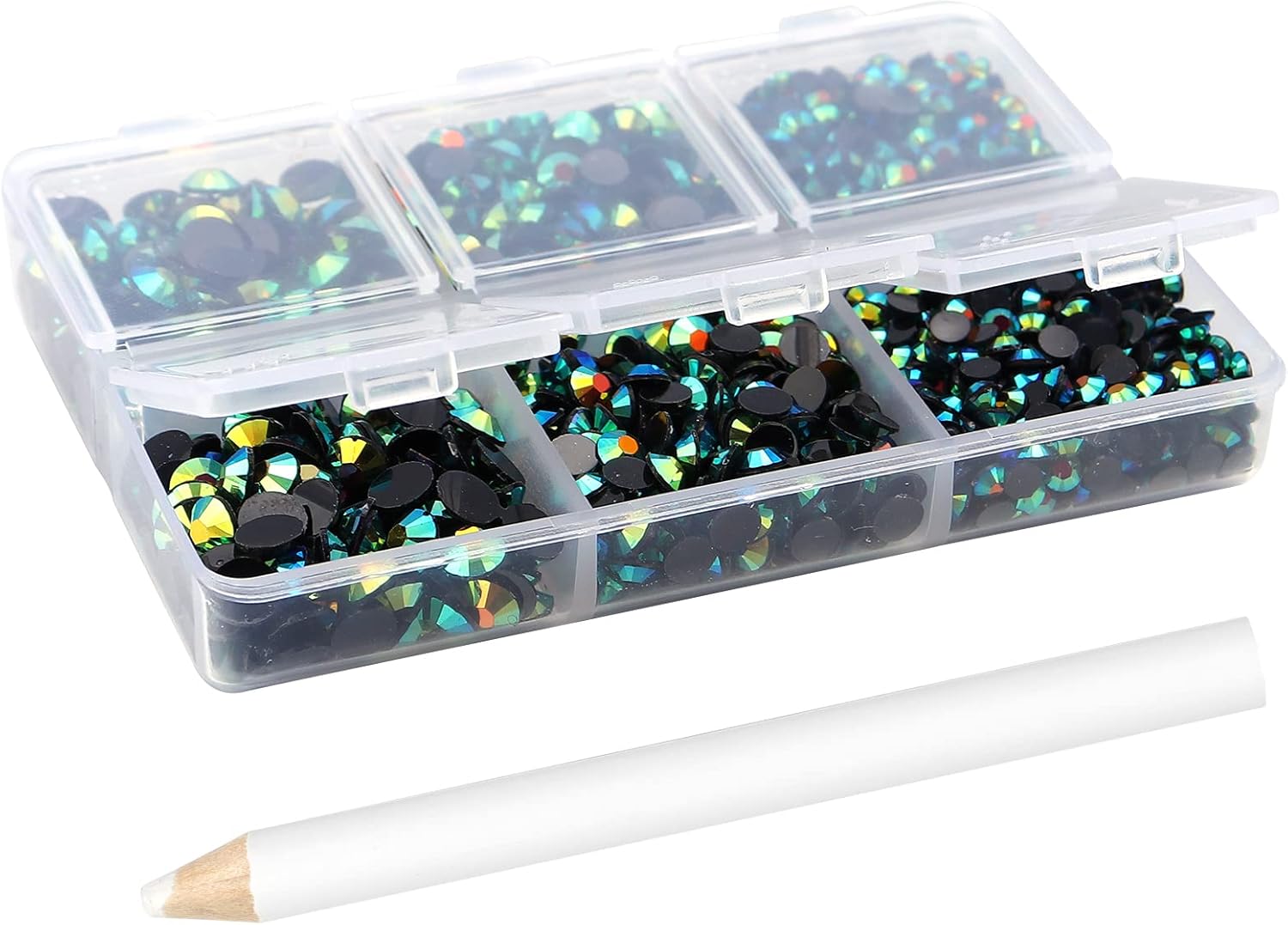 Multi Size 3mm 4mm 5mm Rhinestones Set for Nails Crafts Emerald Non Hotfix Rhinestones Nail Gems Rhinestone Jelly AB&Round Flat Back Resin Rhinestone for Makeup Clothes Shoes Eyes Bottles Crafts