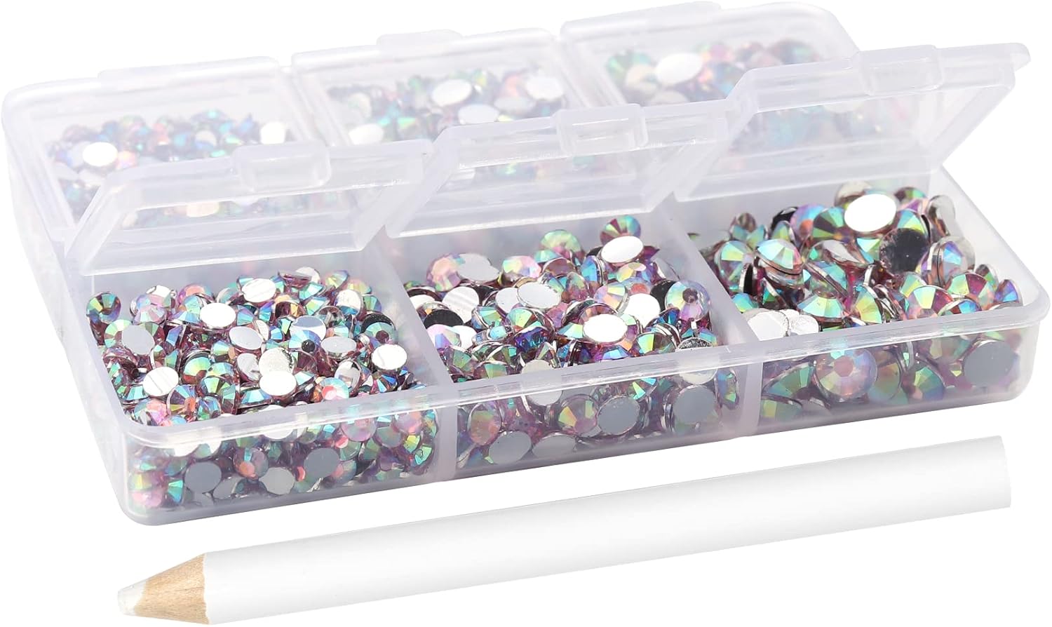 Multi Size 3mm 4mm 5mm Rhinestones Set for Nails Crafts Champagne Non Hotfix Rhinestones Nail Gems Rhinestone AB Color&Round Flat Back Resin Rhinestone for Makeup Clothes Shoes Eyes Bottles Crafts