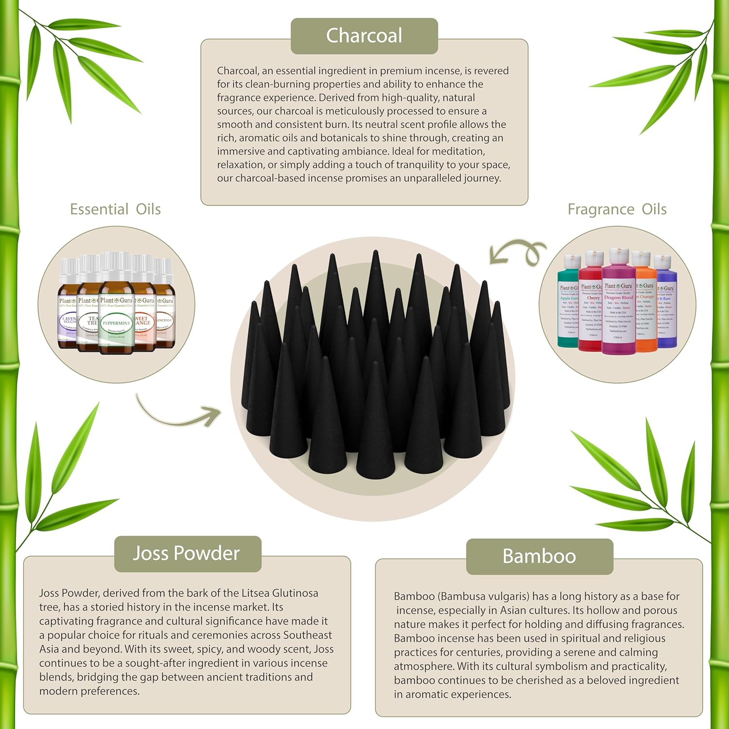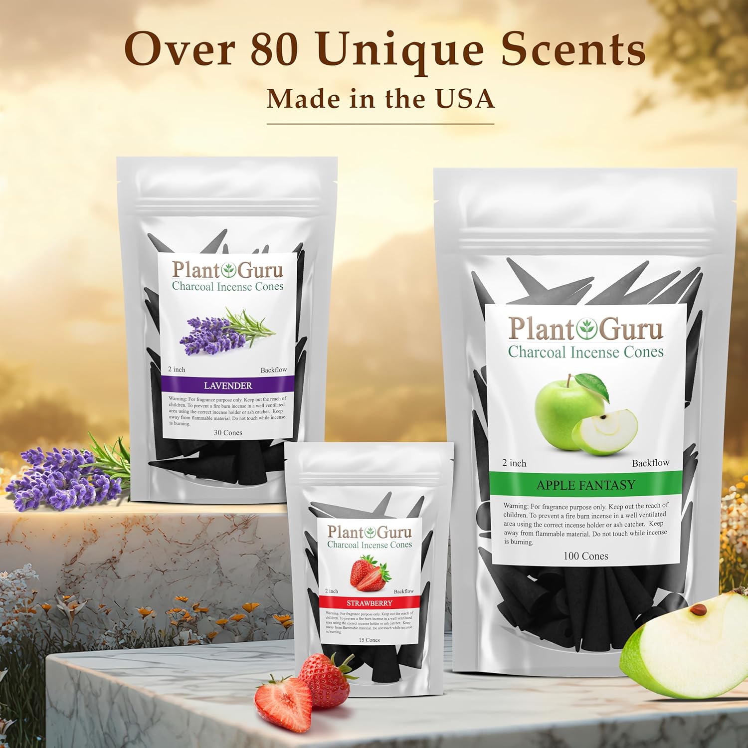 • ✅ MADE IN THE USA - 60 Cones Per Pack - Hand dipped daily using premium grade fragrance Oils. Each cone is 2'' inches long and made of high-quality charcoal. Hand dipped for 48 hours. Burns time is approximately 25 to 30 minutes.