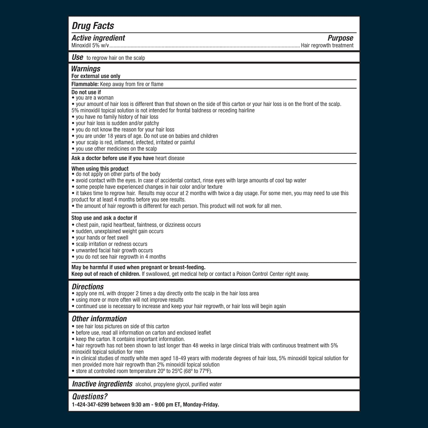 • SCIENCE-BACKED RESULTS: 70.6% of men using 5% topical minoxidil saw an improvement in hair loss after 4 months of use, and 62% of men showed no increased hair loss in a one-year study.