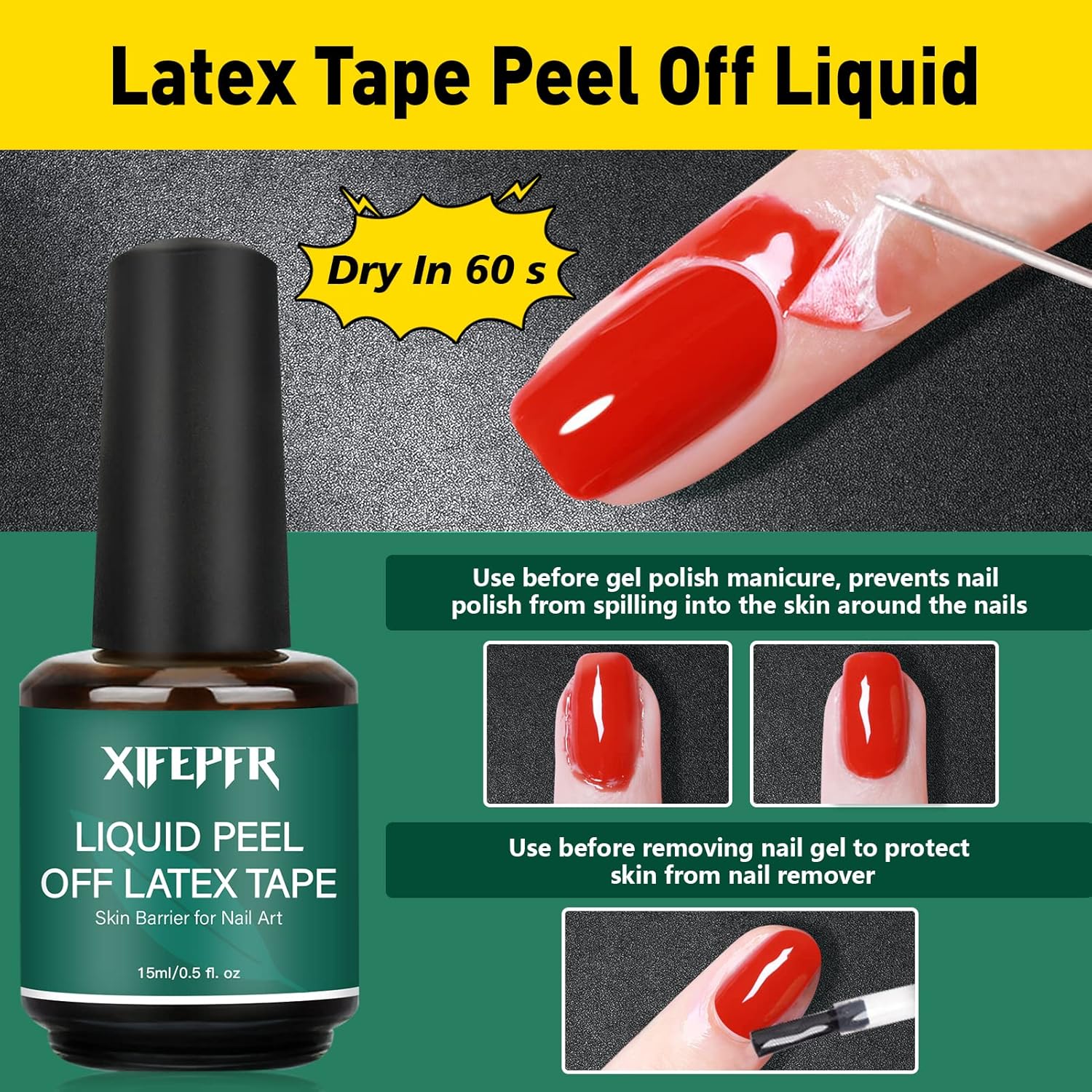 • Liquid Peel Off Latex Tape: Apply liquid latex to the skin around the nail and wait about 60s for a dry soft gel to form. It is a natural protective barrier, use before applying gel nail polish remover to prevent gel nail remover from coating the skin. Use before manicure to prevent spillage onto the skin when applying nail polish. Easy to clean up, no skin damage.