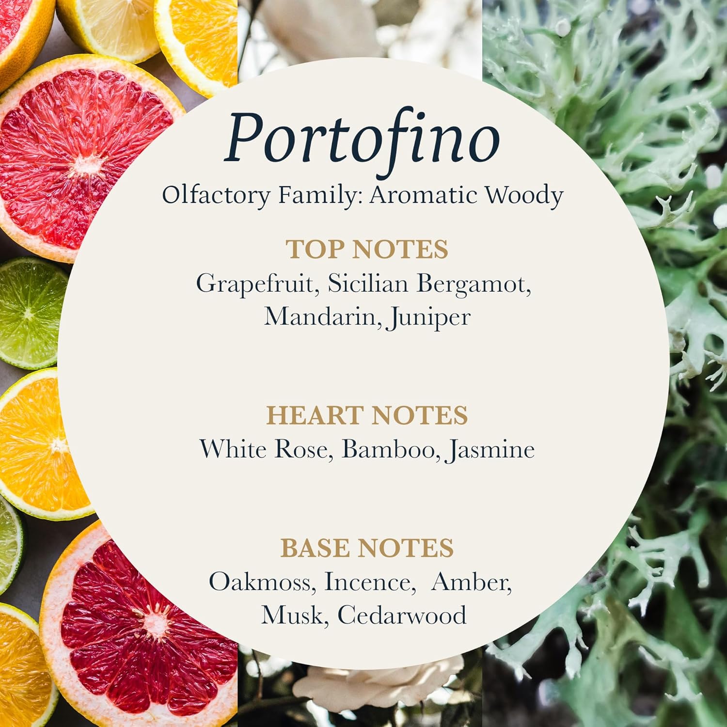 • <strong>Authentic Portofino Scent</strong>  A sophisticated fragrance oil blending grapefruit, bergamot, Sicilian mandarin, orange, and juniper with warm notes of rosemary, rosewood, musk, incense and oakmoss.
