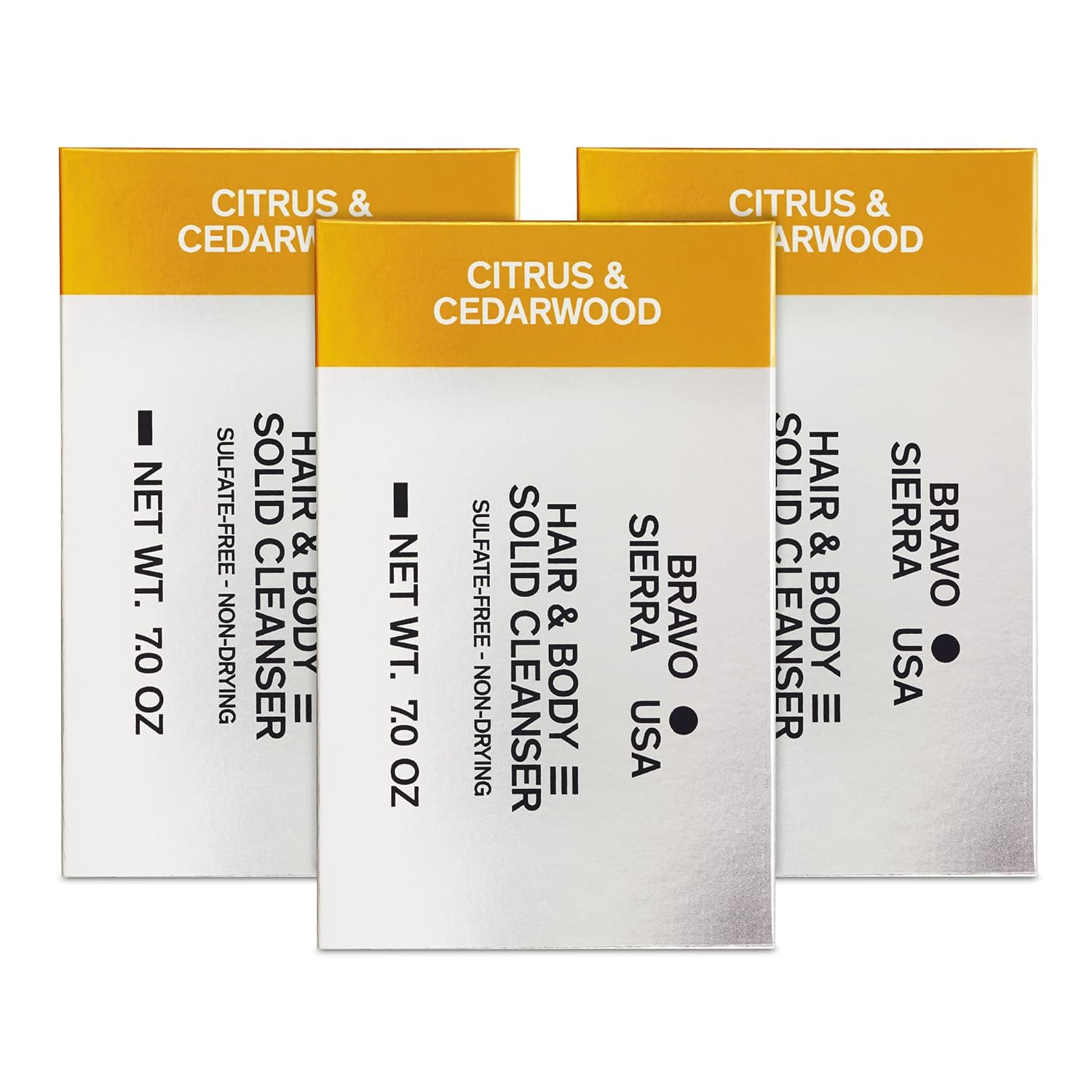 Bravo Sierra All-In-One Citrus & Cedarwood Men's Body and Hair Bar, 3-Pack - Coconut, Shea Butter & Oat Flour for Soft Skin & Healthy Hair, 7 oz