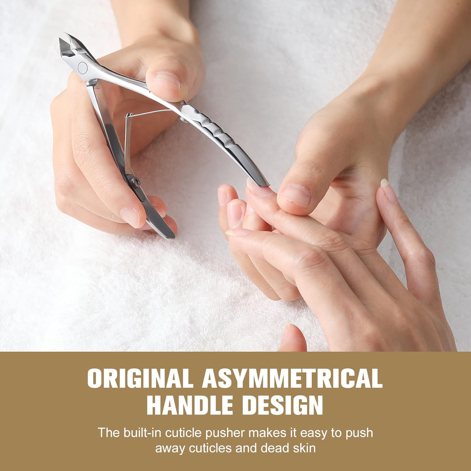 • ERGONOMIC AND FLAWLESS APPLICATION: The manicure set features a double spring design that gives precise cuts. The handles of our nail nipper for cuticles are asymmetrical, textured, carved, and anti-slip, providing greater accuracy in little time