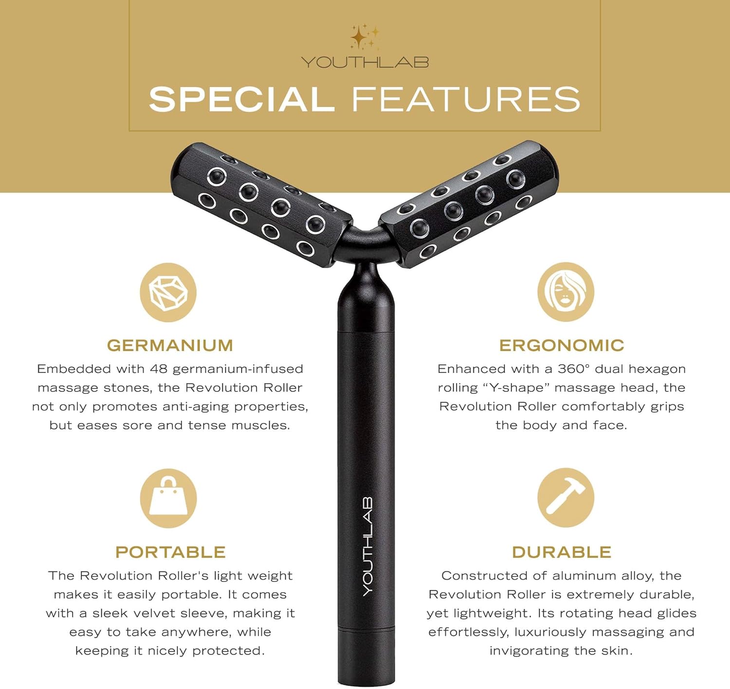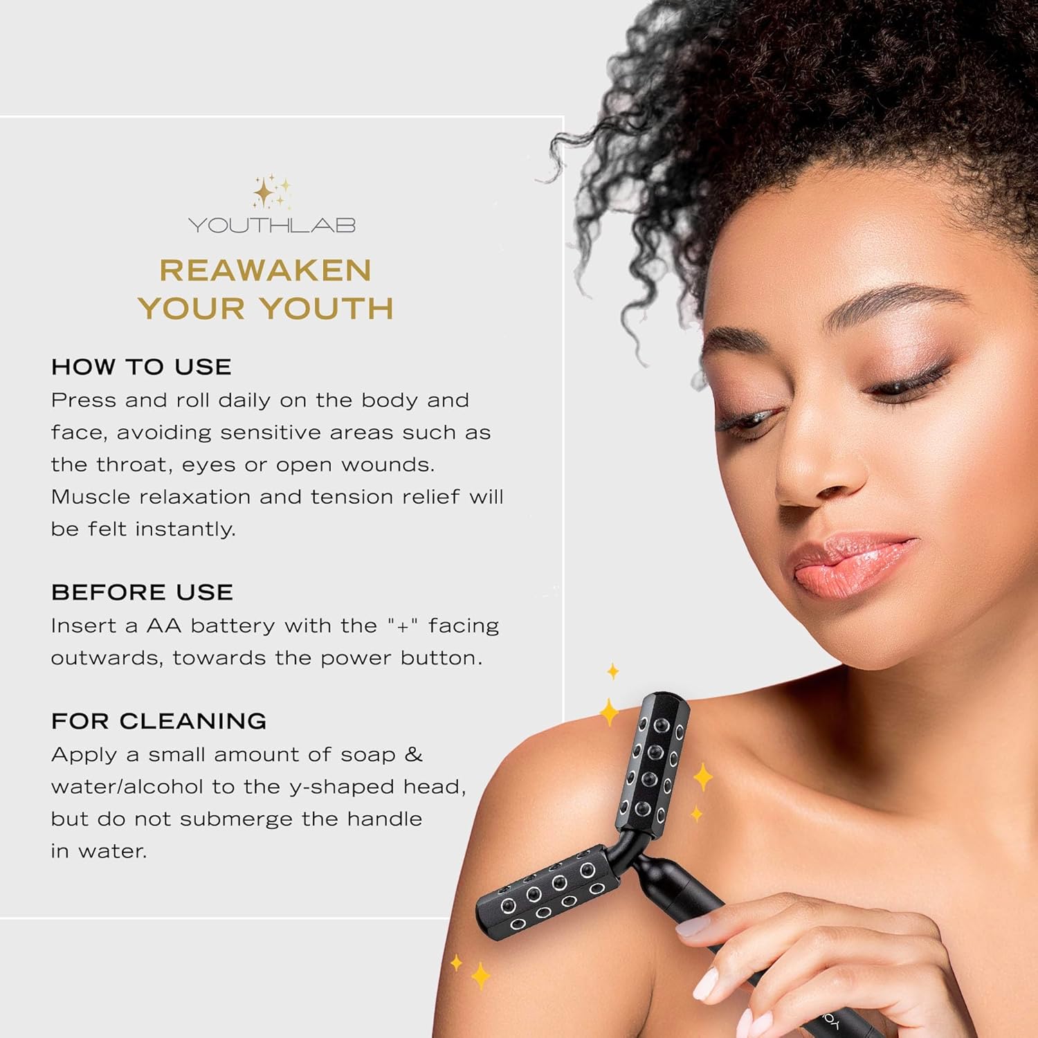 • RELAX AND UNWIND: The rhythmic rolling action and unique “Y-shaped” head delivers a soothing massage across the face, neck, arms, legs, and jawline — perfect for refreshing tired skin and melting away daily stress.