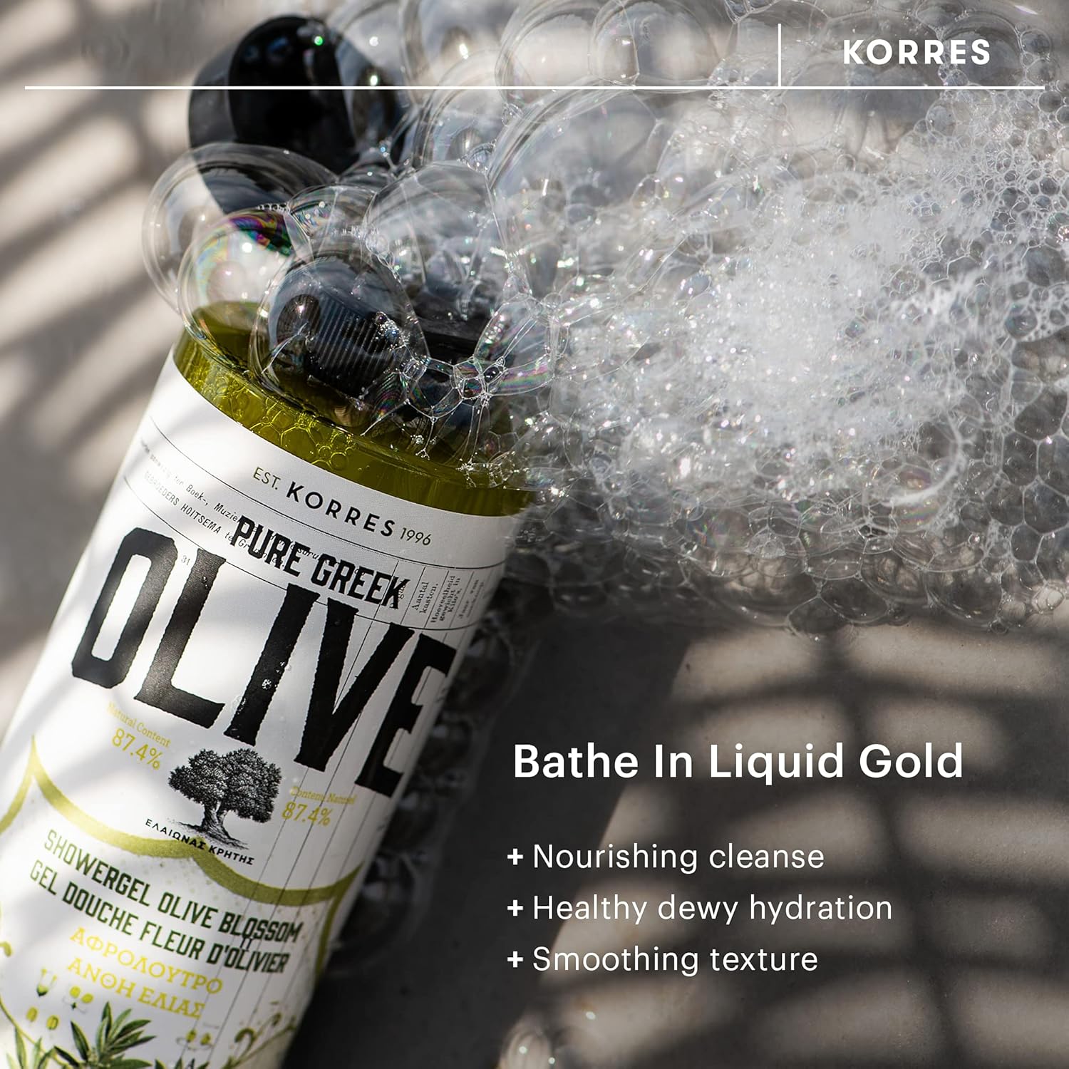 KORRES Body Care Collection, Pure Greek Olive Oil Shower Gel, Body Lotion and Hand Cream Moisturizer for Dry Skin, Moisturizing and Hydrating for Smooth, Supple Skin, Olive Blossom, 3 Piece Gift Set